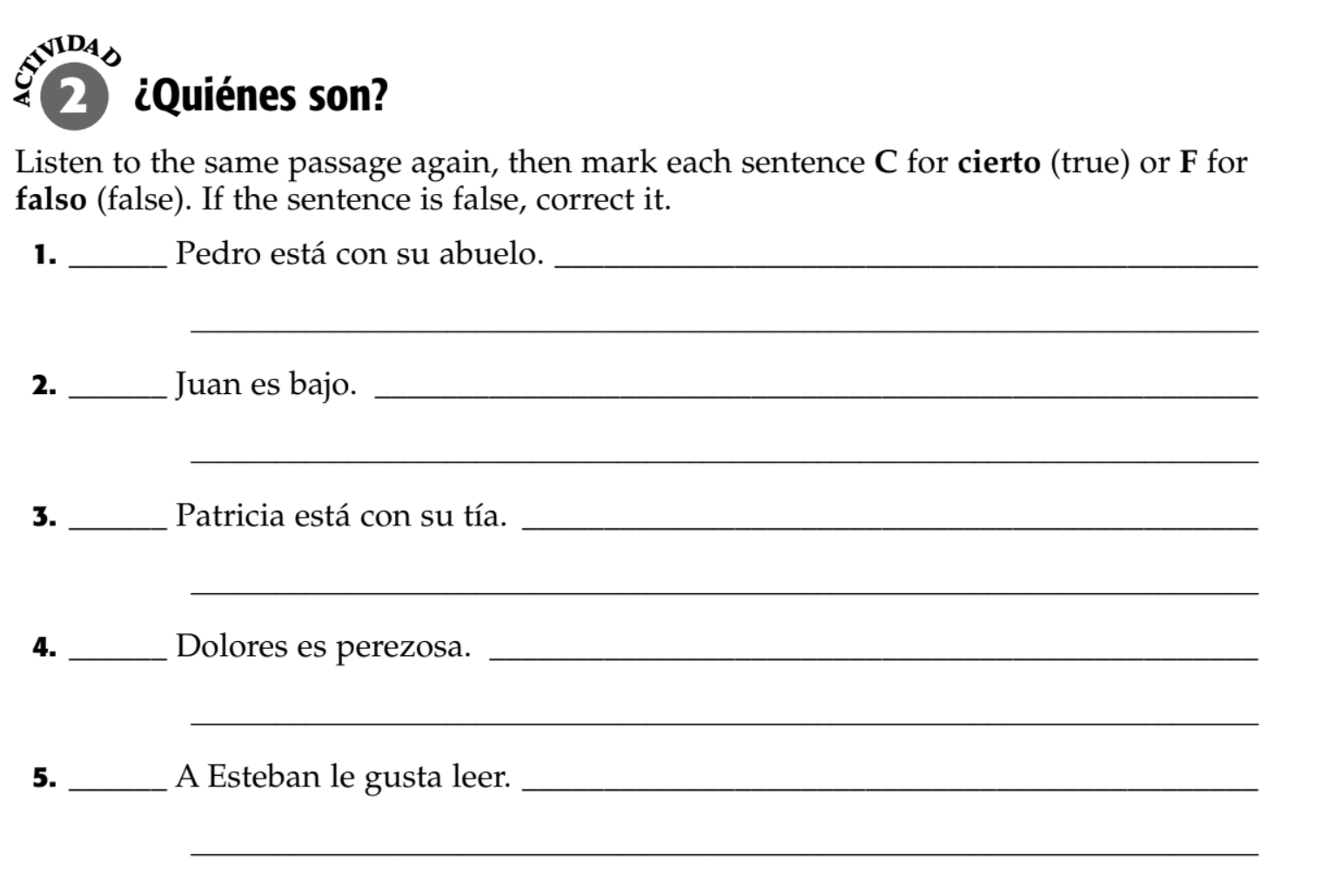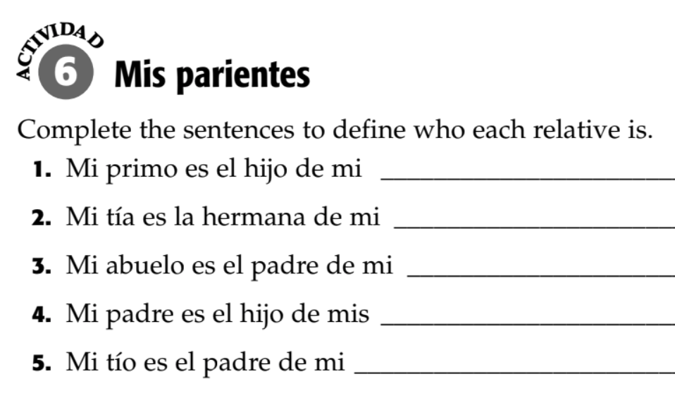 If #6 is incorrect, complete the sentence:Pedro está con su ________.If it is correct, type: correcto.