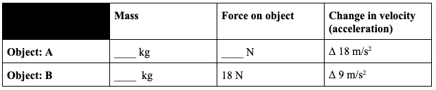 How could you predict the mass of each Object by analyzing force and acceleration?
