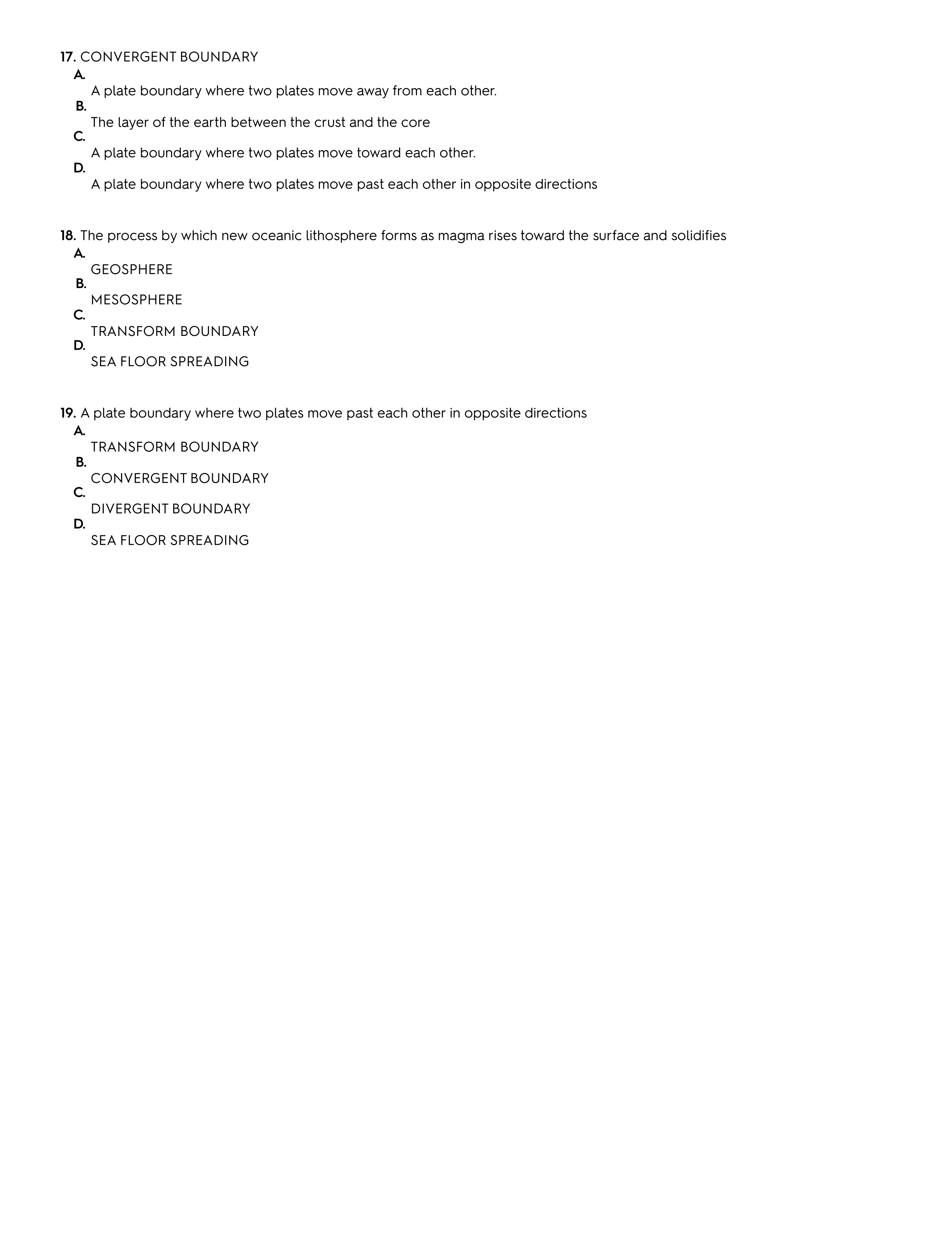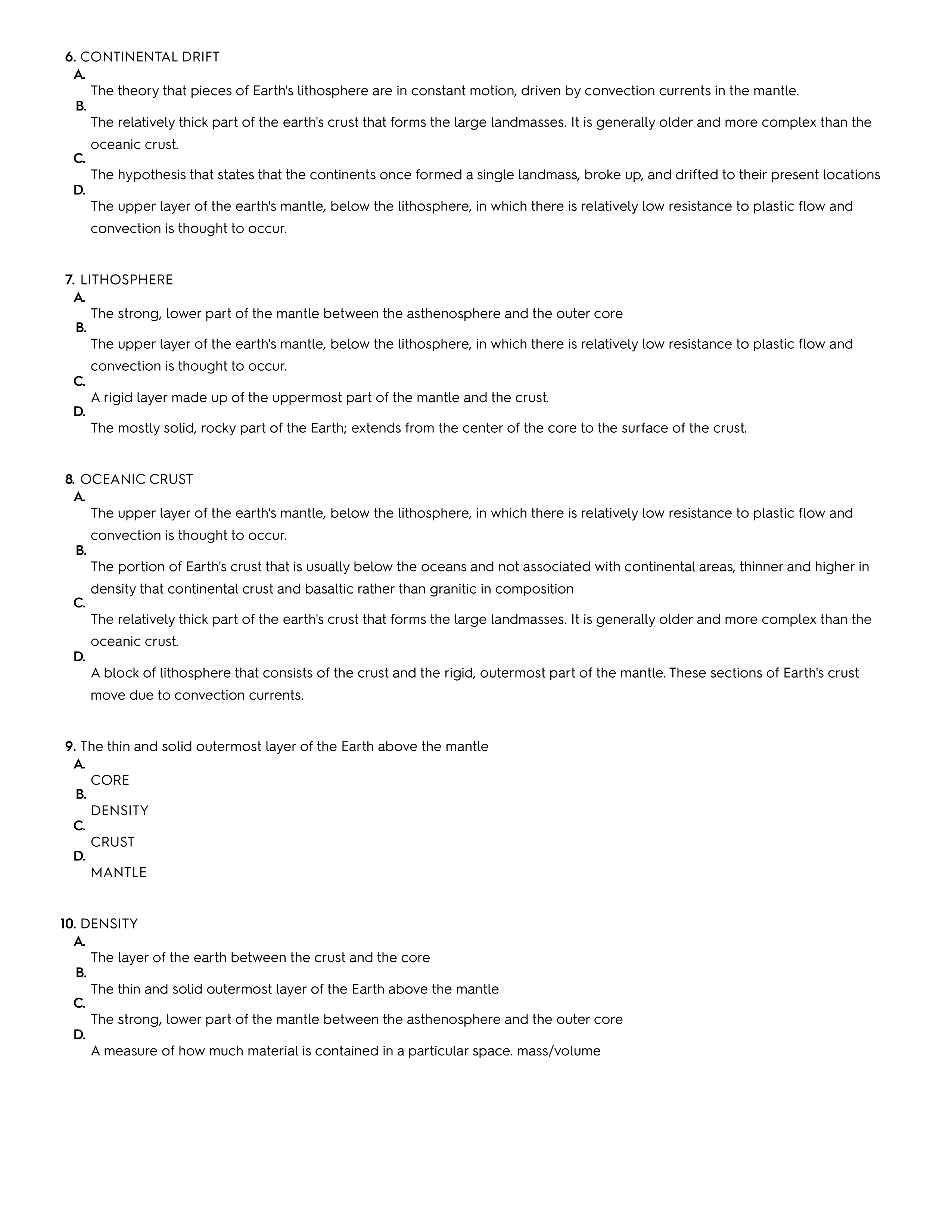 Layers of Earth and Plate Tectonics Vocabuarly Quiz