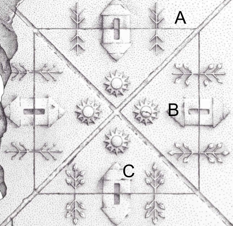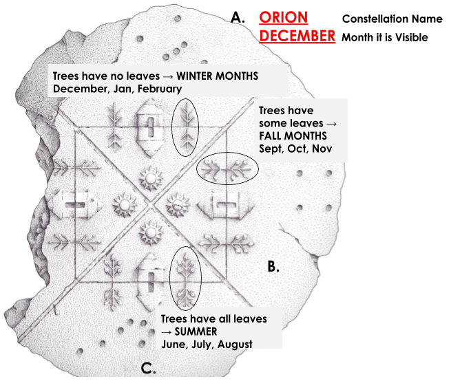 Using the trees as clues, what season could be shown in section C of the artifact?
