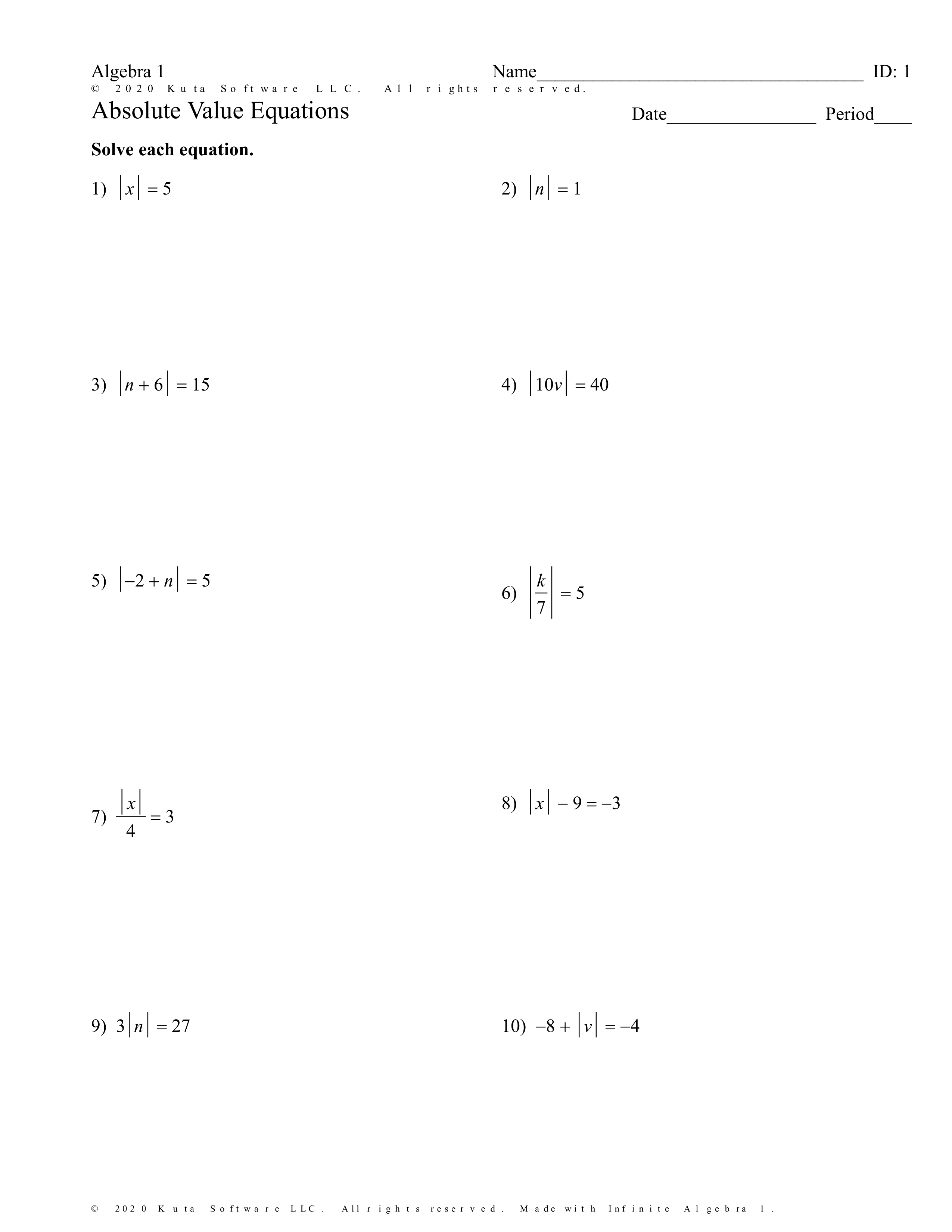 Solve each equation. Least to greatest, separate with a comma, no spaces.