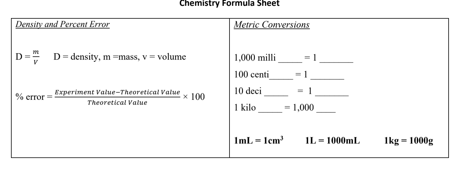 To receive full credit you MUST show your work including units for ALL MATH Calculations!!