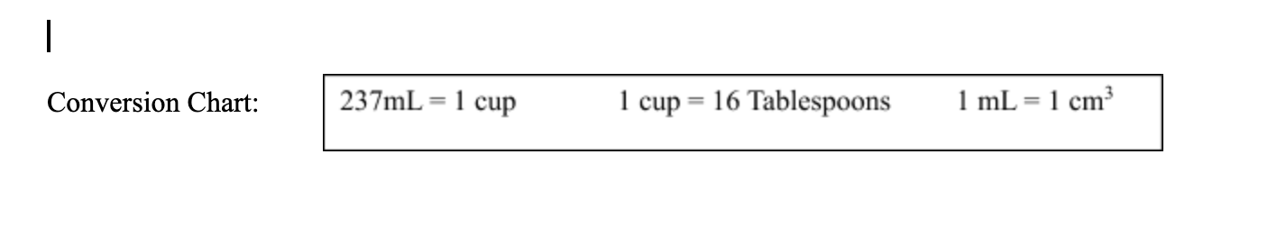 For the second part of the project, you will use your balance scale to find the common household substance density and answer questions related to your lab results. For this part, you will need: