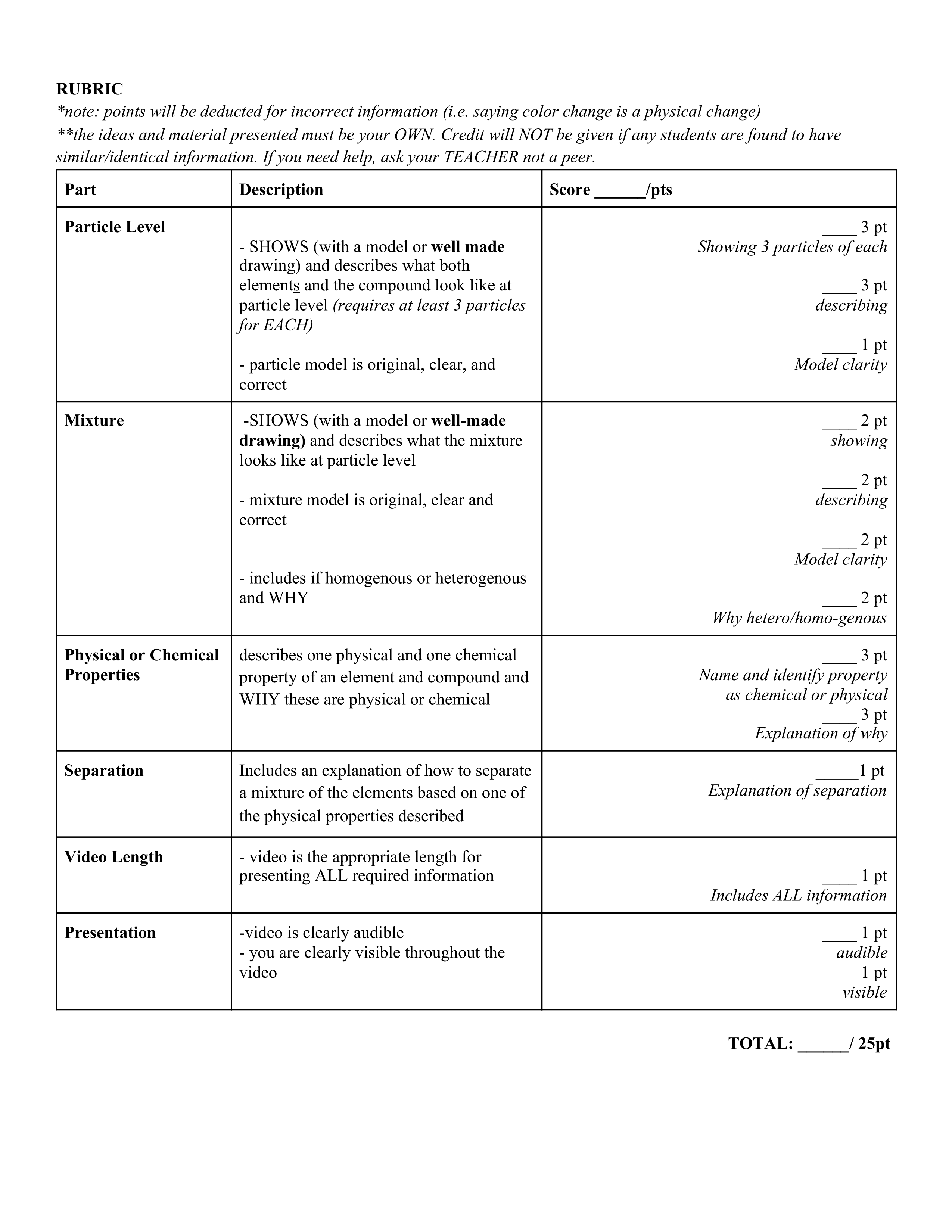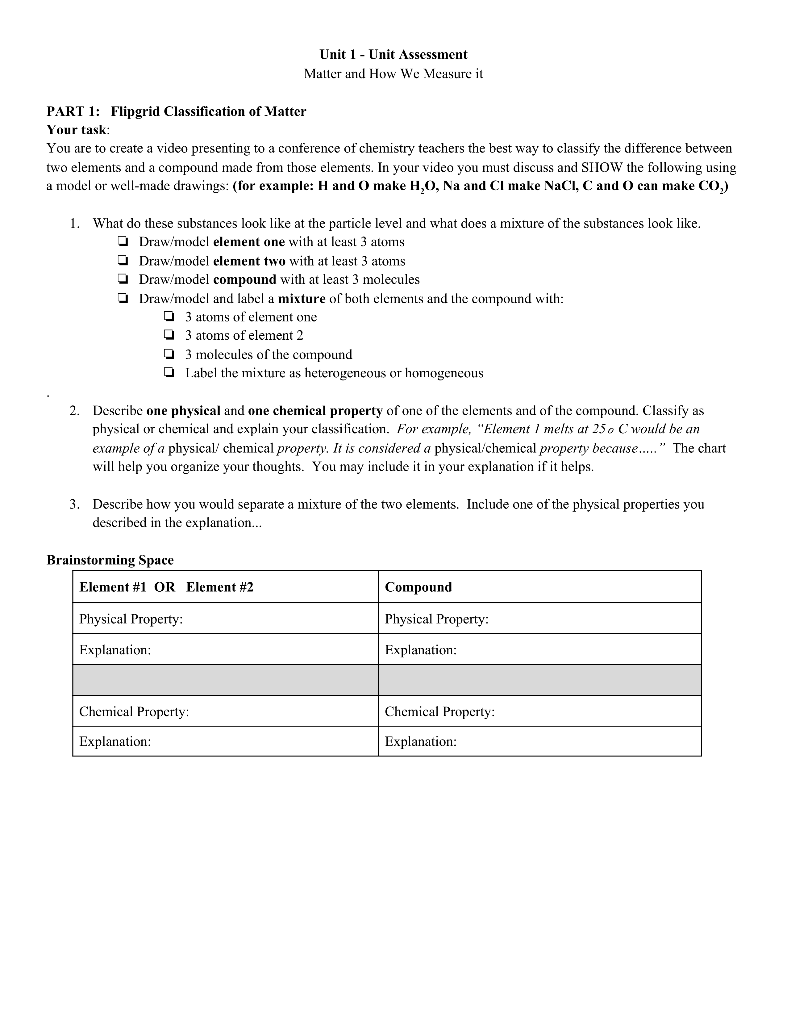 Unit 1 Matter and How We Measure It - End of Unit Assessment