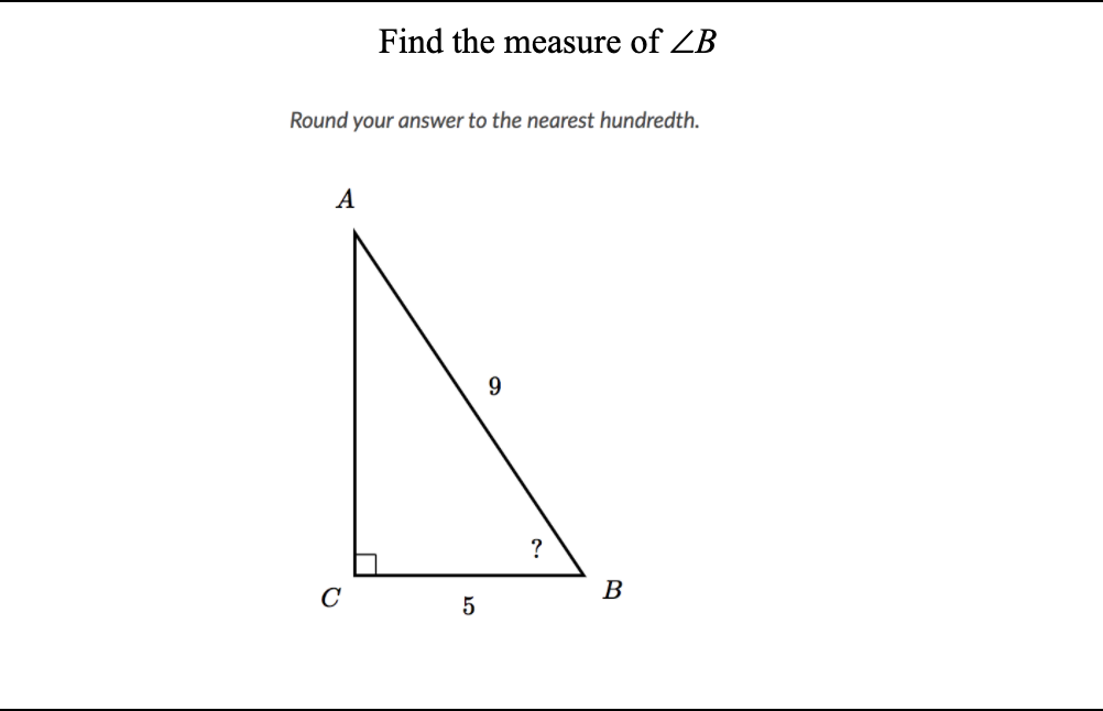 Find the measure of angle A. Round your answer to the nearest hundreth.