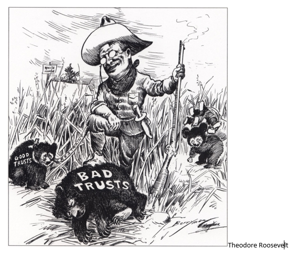 How does this cartoon demonstrate Roosevelt's feelings about trusts?