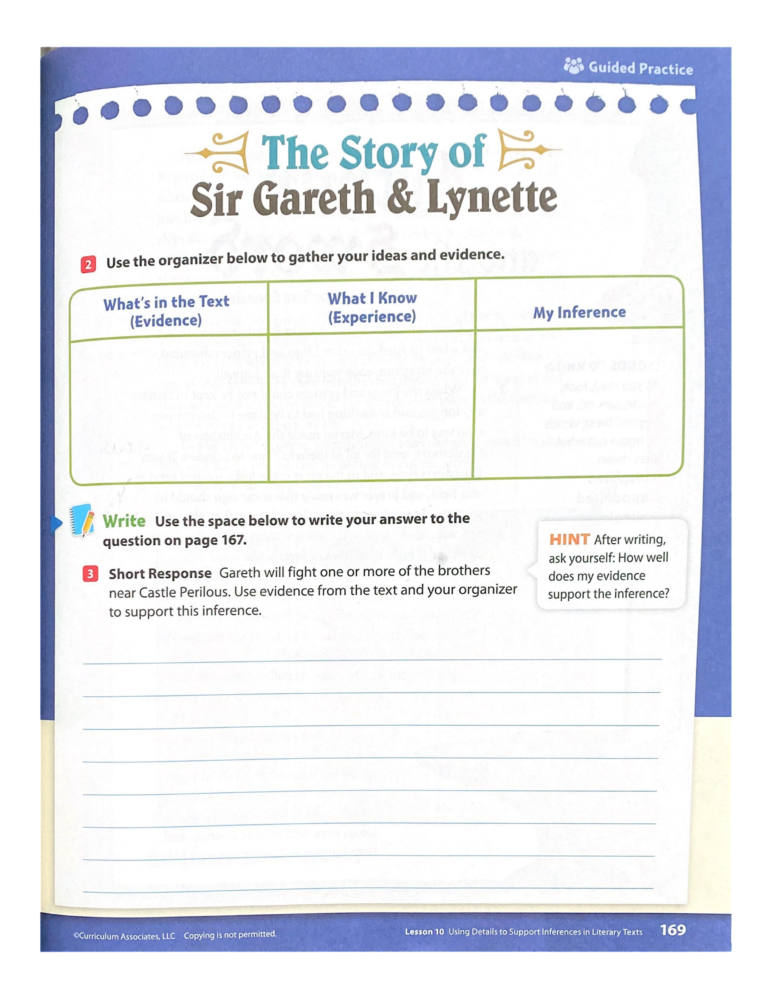 Gareth will fight one or more of the brothers near Castle Perilous. Use evidence from the text and your organizer to support this inference.