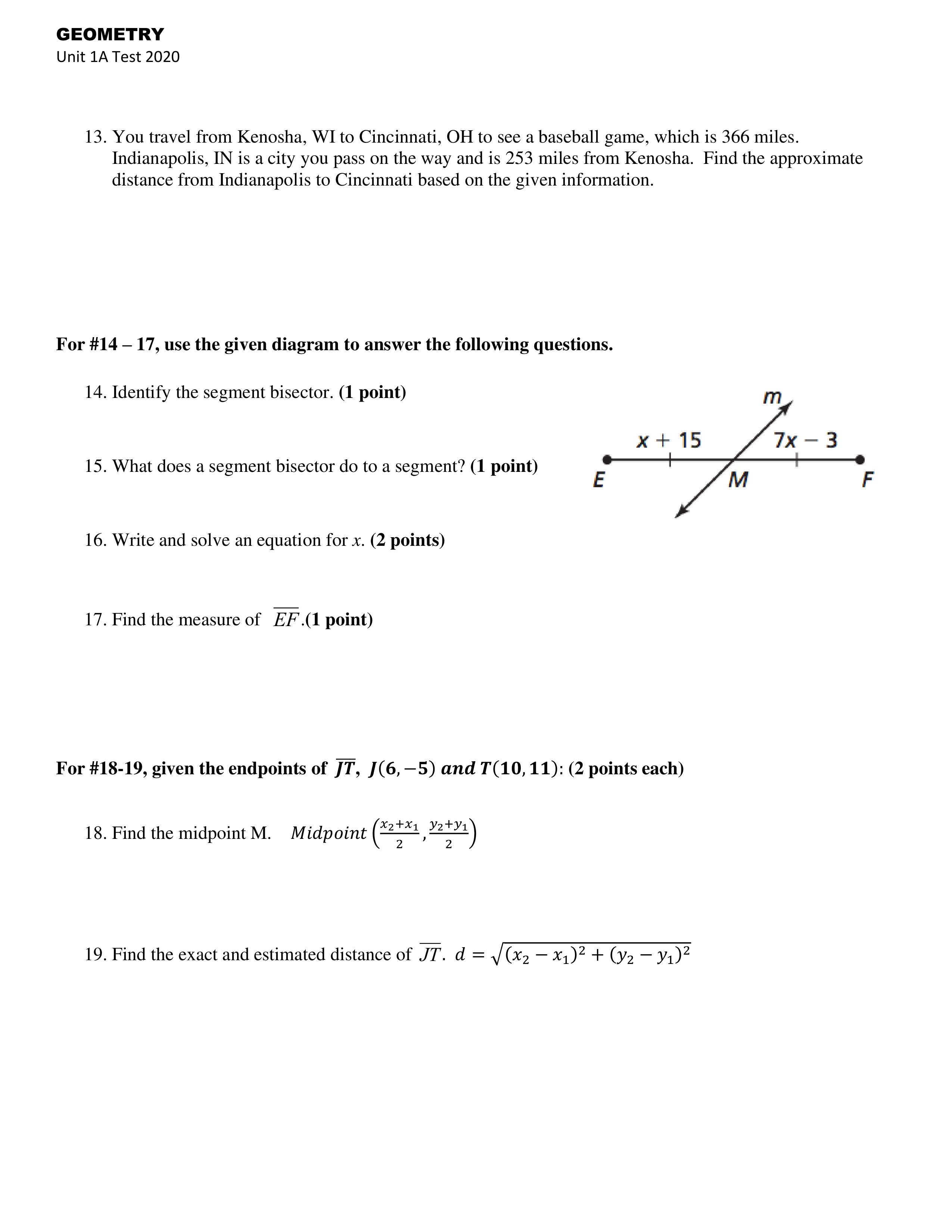 Find the midpoint of segment JT.