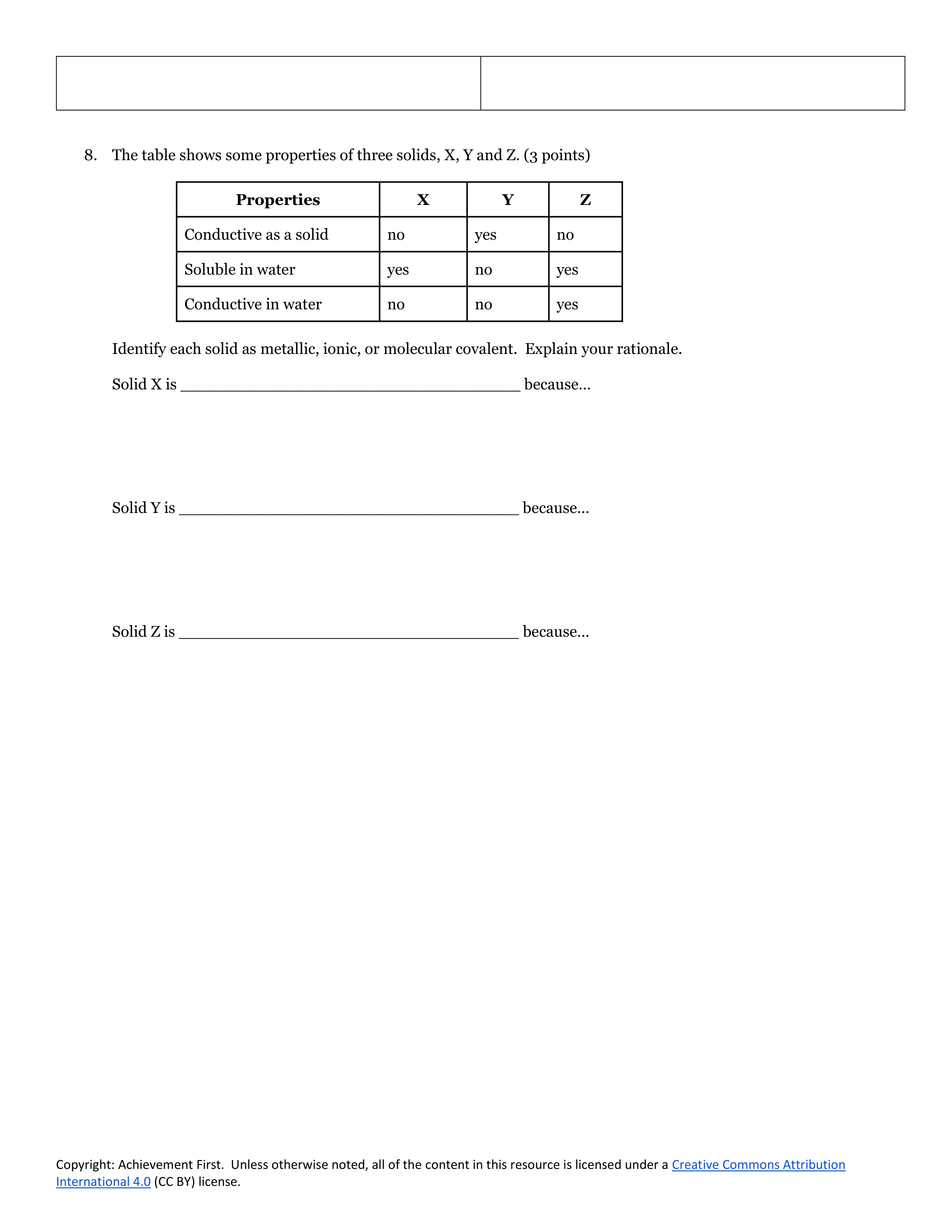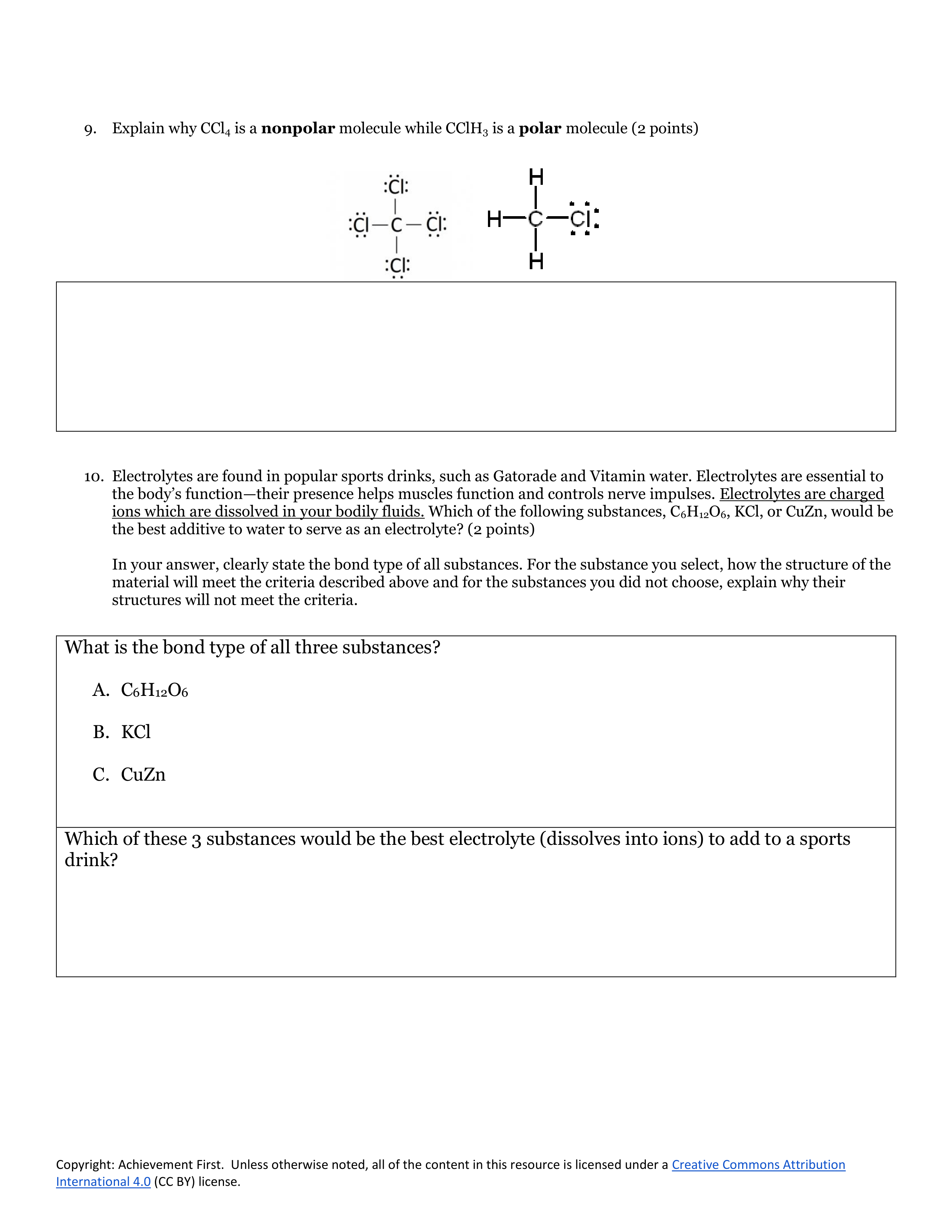 Skip the question that says "What is the bond type of all three substrances" and move on to 19.