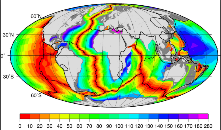 Why are the blue and pink colors located closest to the continents?