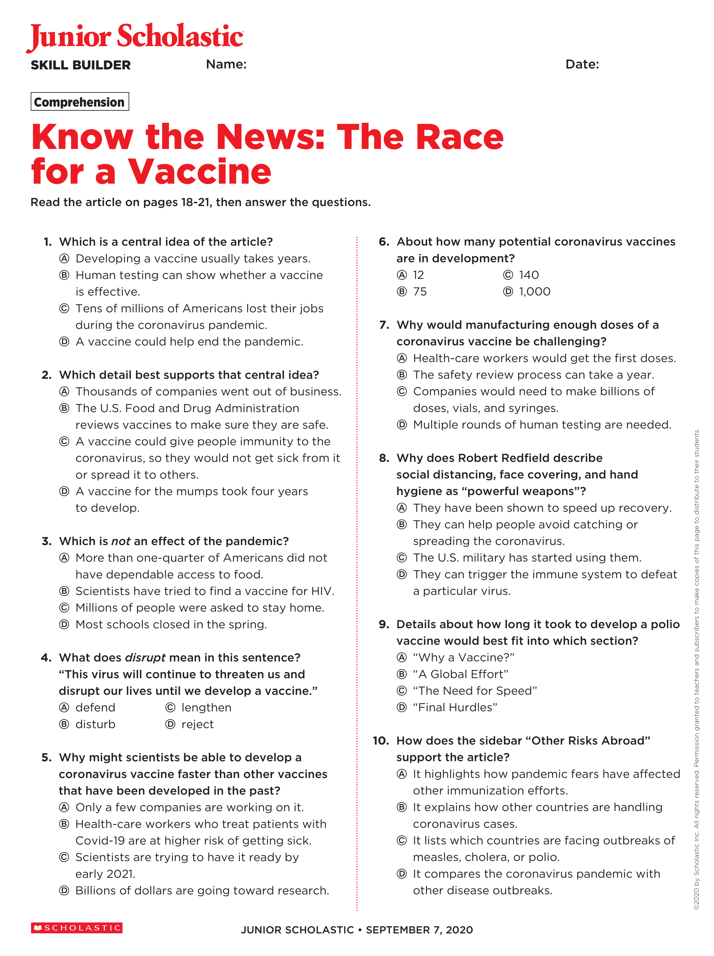 For virtual students: Go to www.digital.scholastic.com and click LOG IN. Then select GOOGLE CLASSROOM. Put your information in and select the SEPT. 7 ISSUE. Then EXPLORE THE ISSUE. Then PRESENTATION VIEW. Your magazine copy should be there for you.