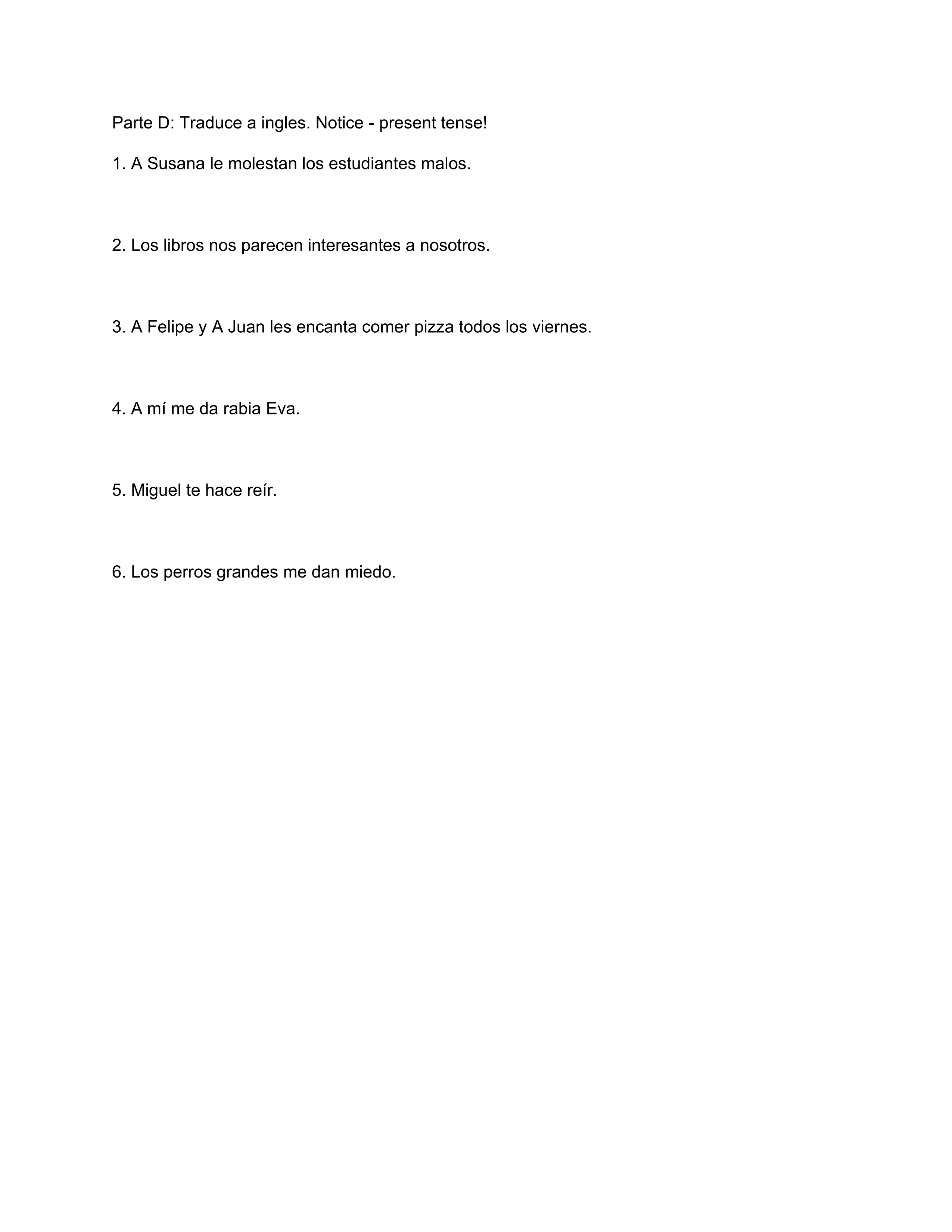 Verbos como gustar - el imperfecto