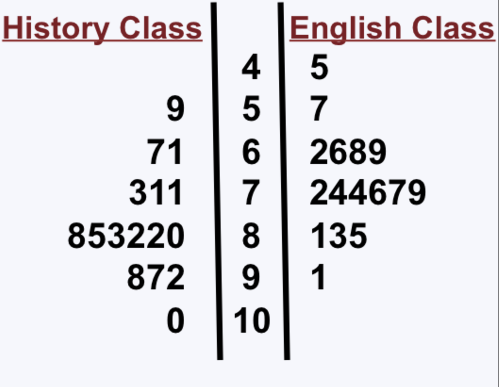 The scores on a state standardized EOC Test are compared below between History and English classes.