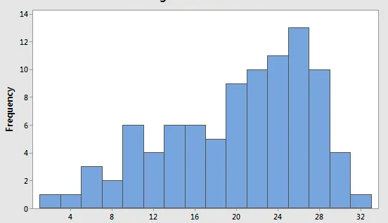 Using the data display shown by the histogram below: