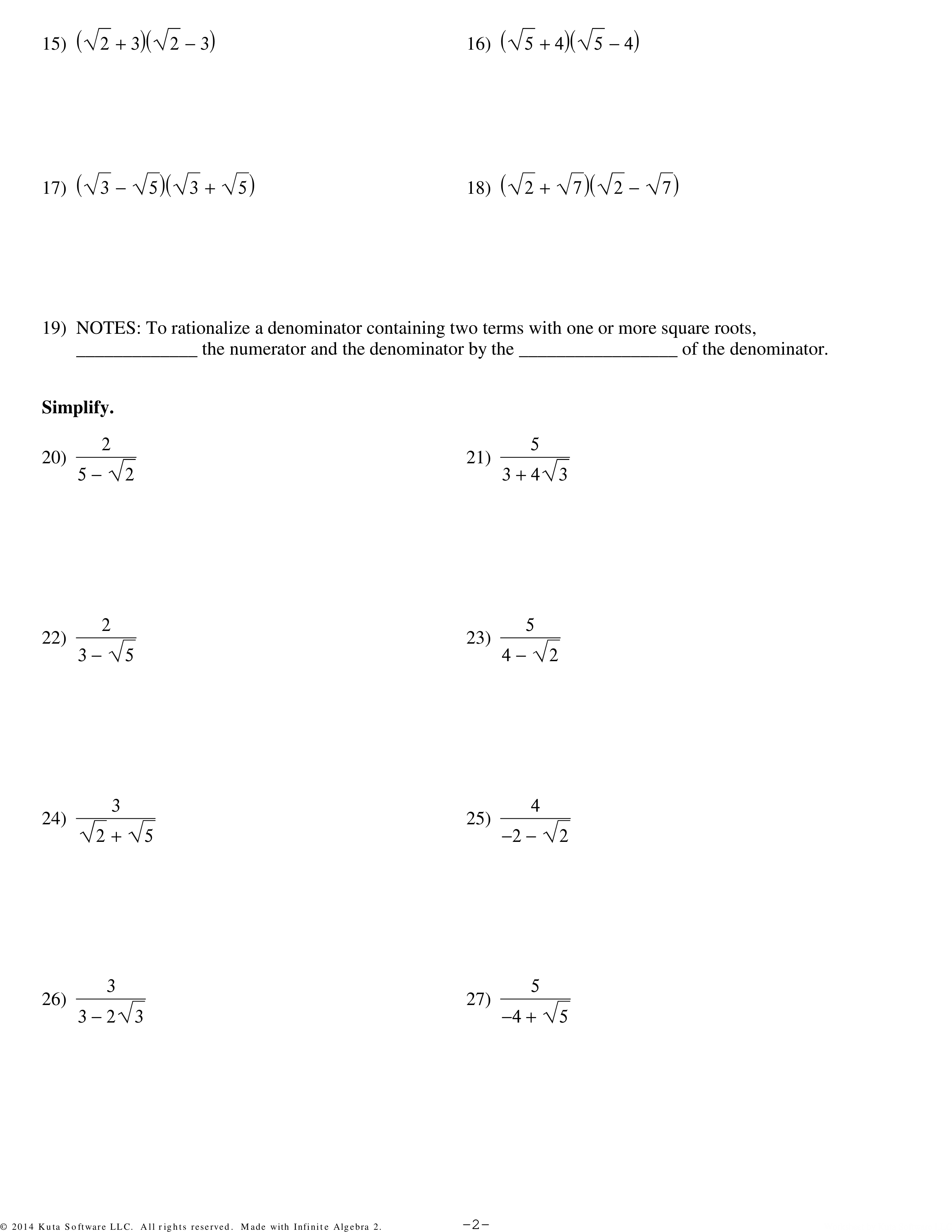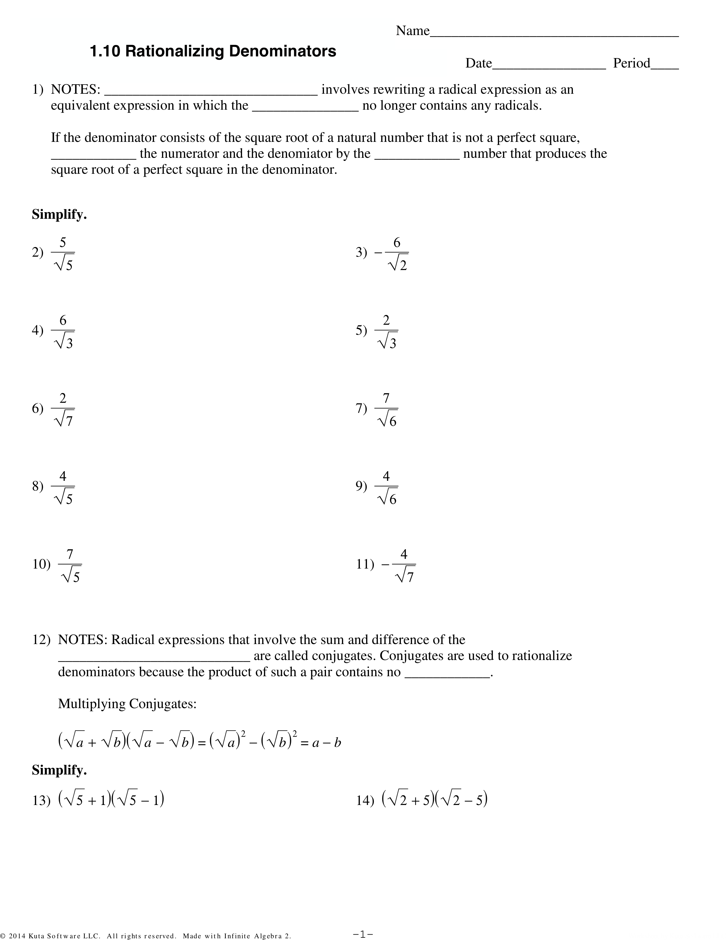 1.10 Rationalizing Denominators