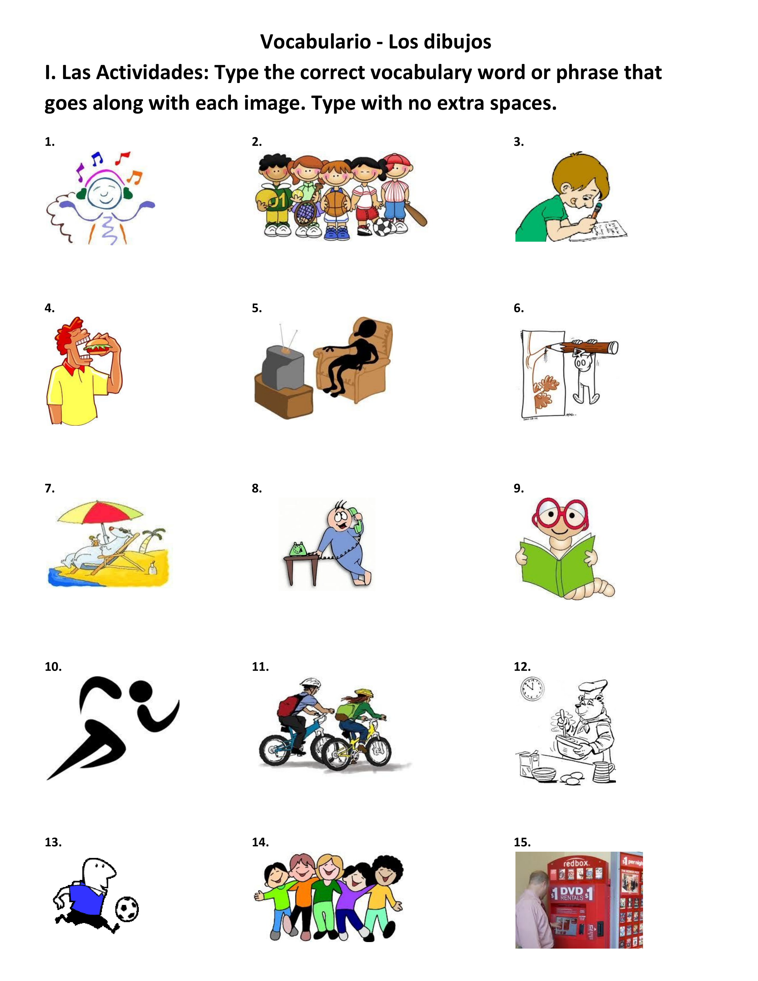 Type the name of the activity from your vocab list with no extra spaces. OK if you can't add accents.