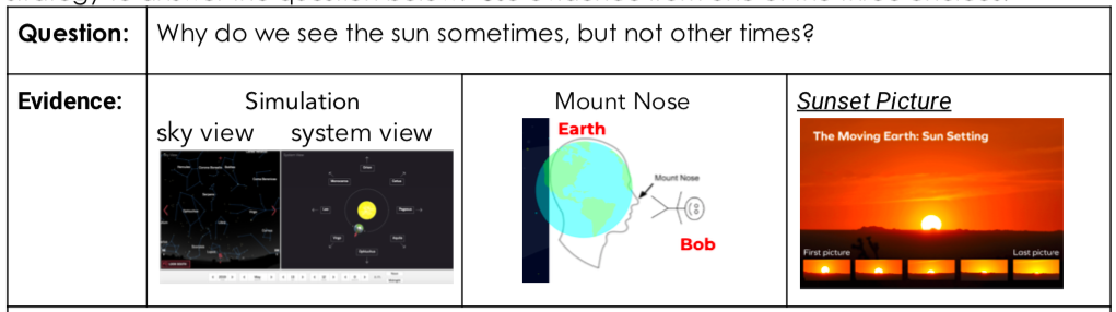 Evidence: In the (choose one: simulation, mount nose video, sunset picture) _______________ it shows ____________