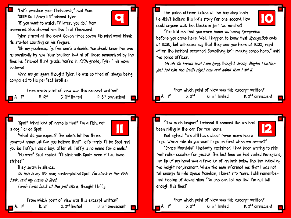 Point of View Task Cards 9 - 16