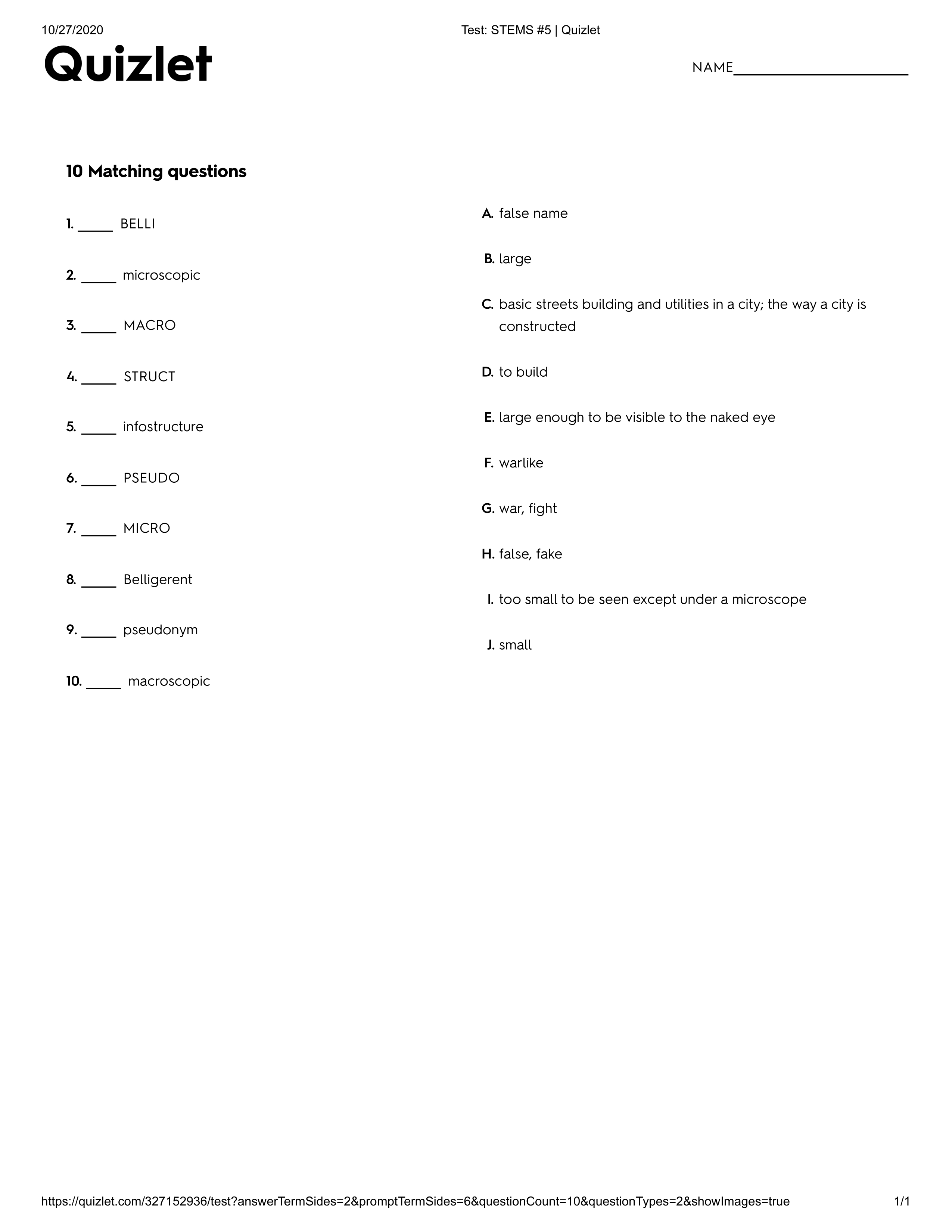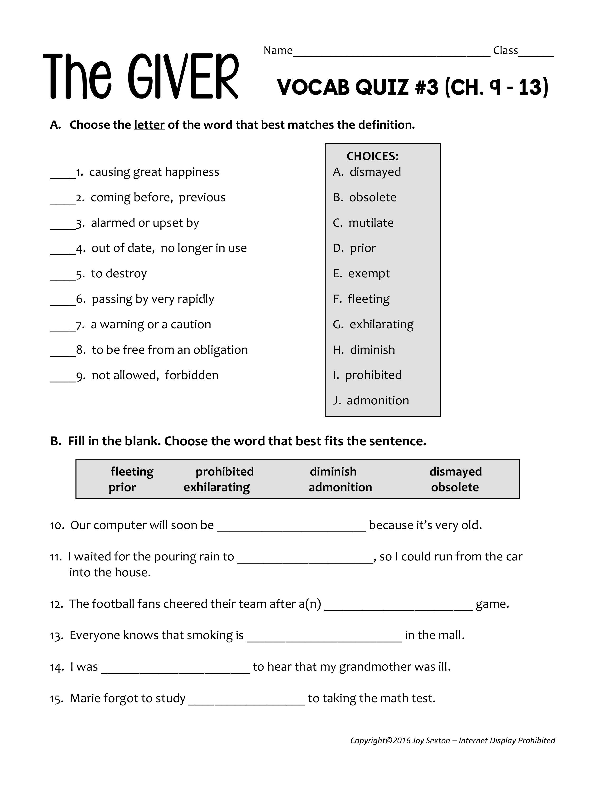 Choose the letter that best matches the definition. Choices are on the worksheet to the left