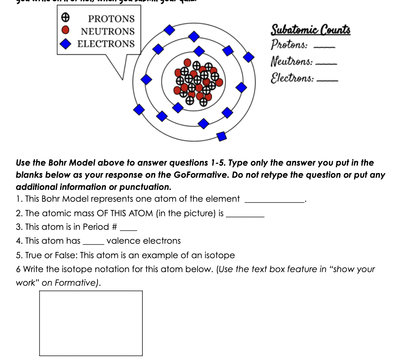 Write the isotope notation for this atom. It's easiest to use the text and type each part of the isotope individually. Make sure each part of the notation is in the correct place.
