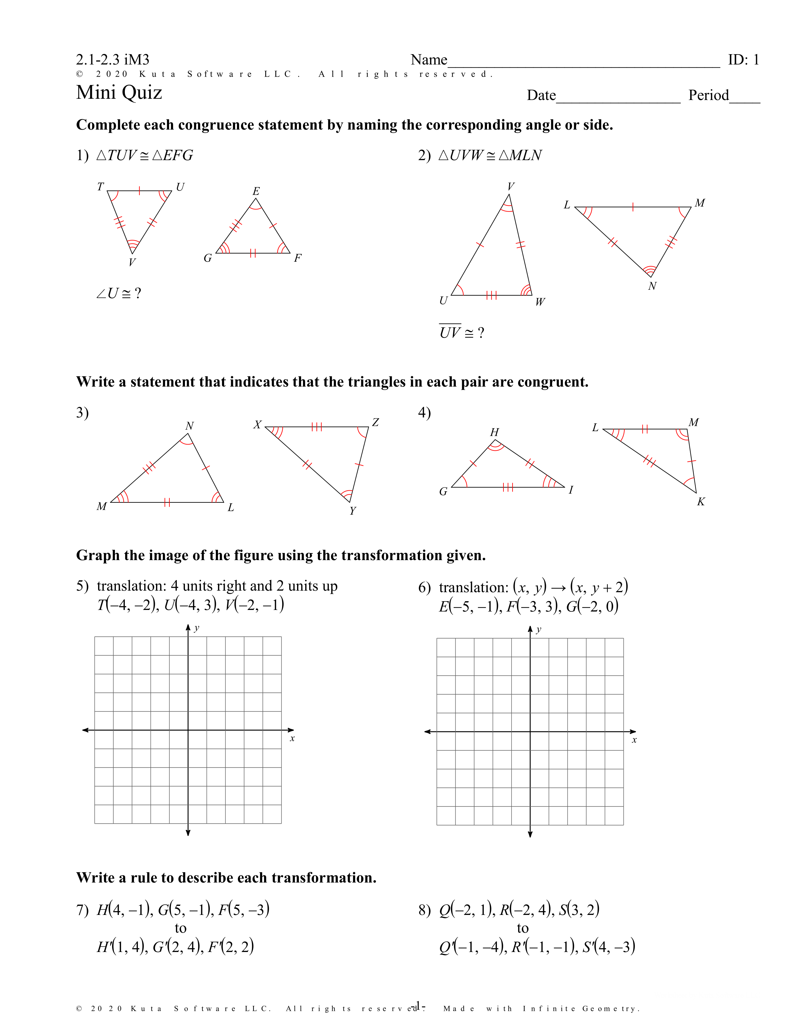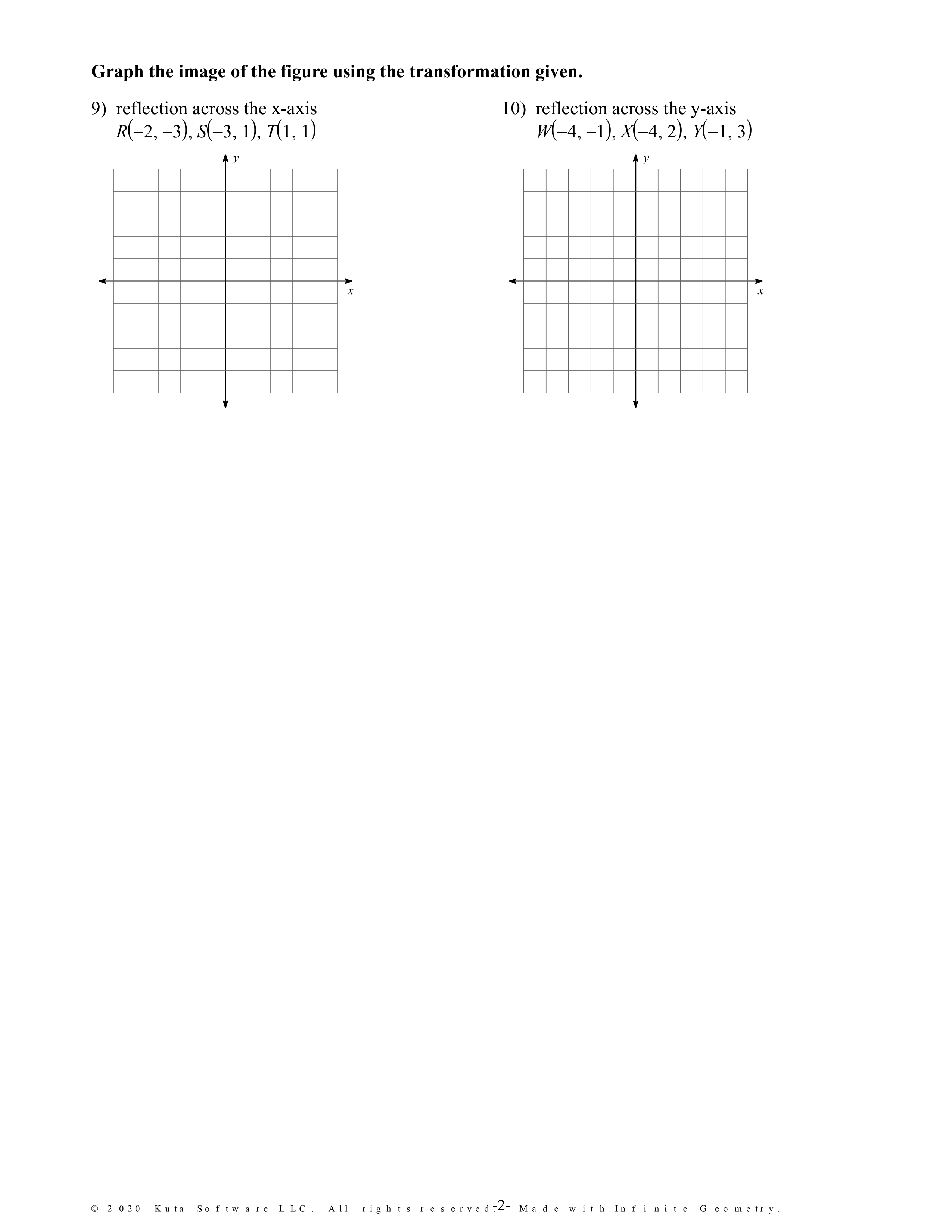 Graph TWO shapes - the preimage and the image using the transformation given. List the ordered pairs of the image.