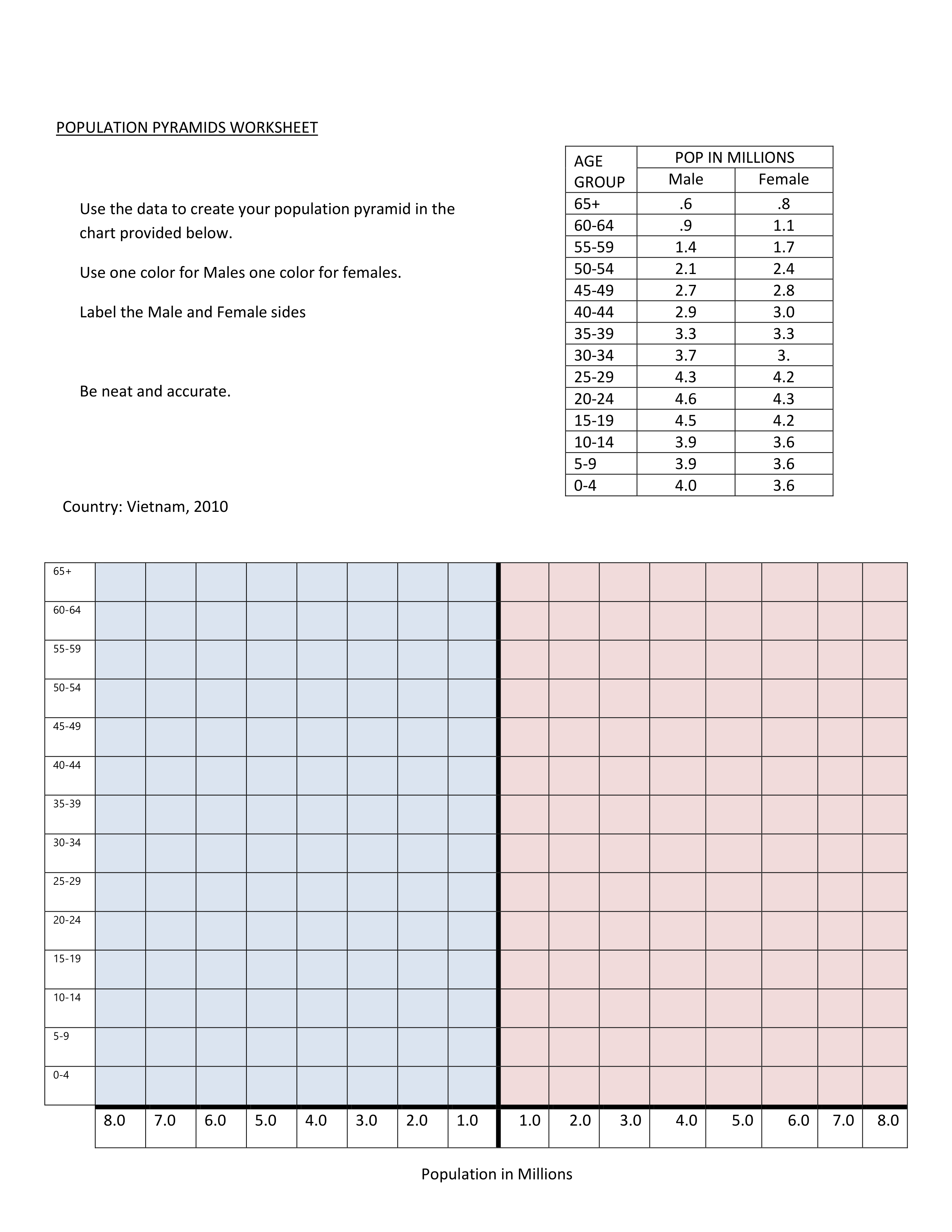 Please complete the Population Pyramid for Vietnam.