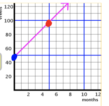 Farmer Kent added 10 vreels every month. She started with 48 of them. Which shows the relationship?