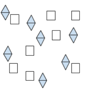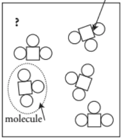 Using shapes, draw a particle diagram and write the code of a mixture of an element and a compound.
