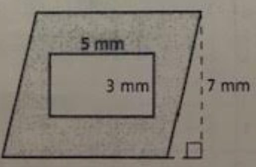 Find the area of the shaded region. The base of the parallelogram is 8 mm.