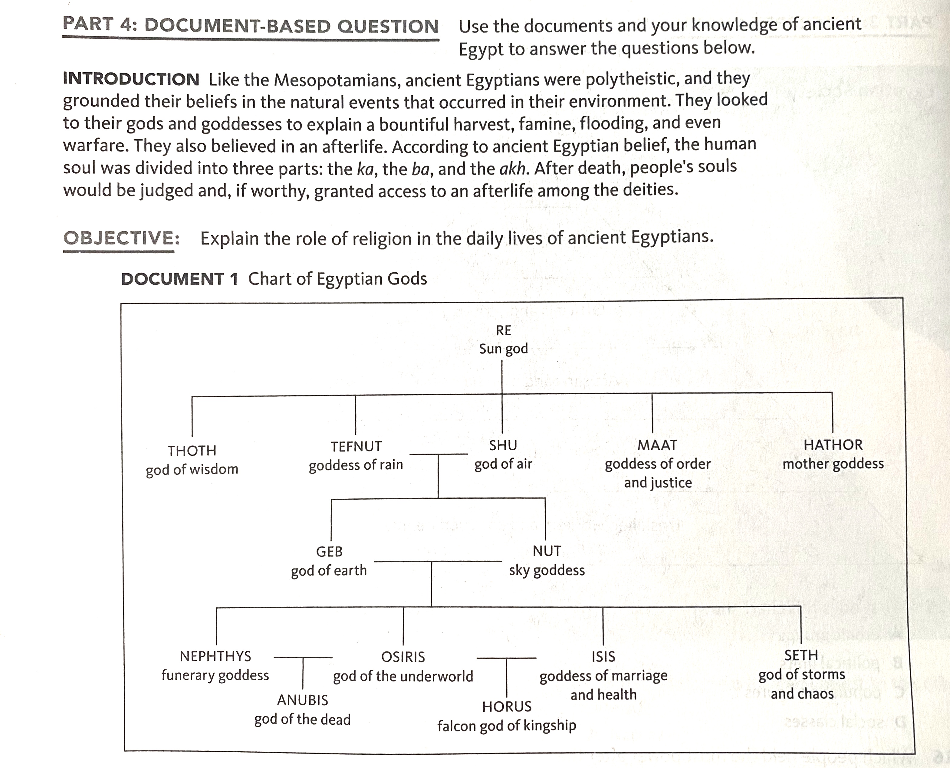 Which gods and goddesses would have been involved in human death rituals and the afterlife? Use a complete sentence to answer the question.