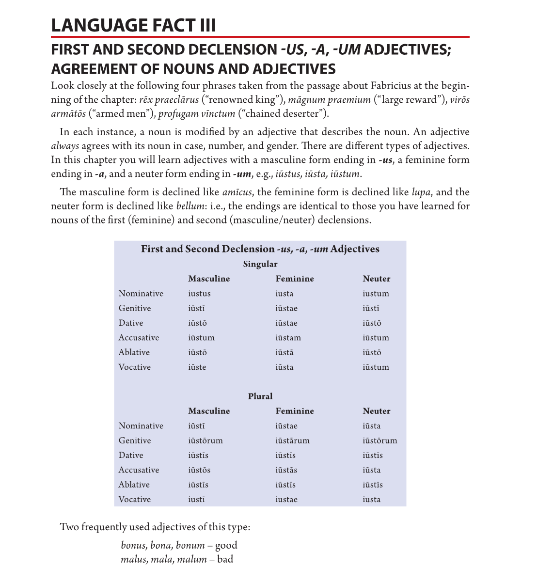 The adjective bonus will agree with all of the following EXCEPT