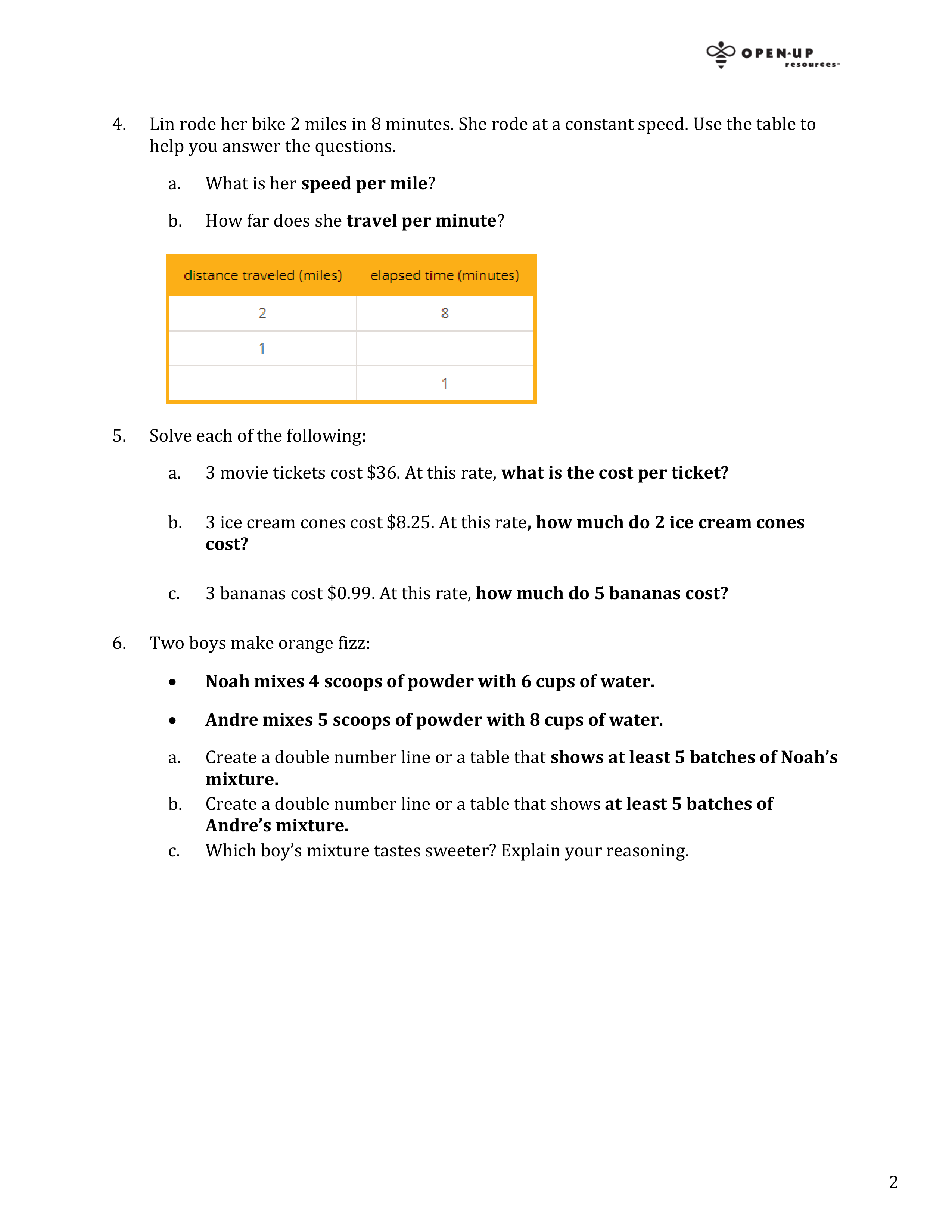 Use the table from question 5. What is her speed per mile? Write your answer as a number only.