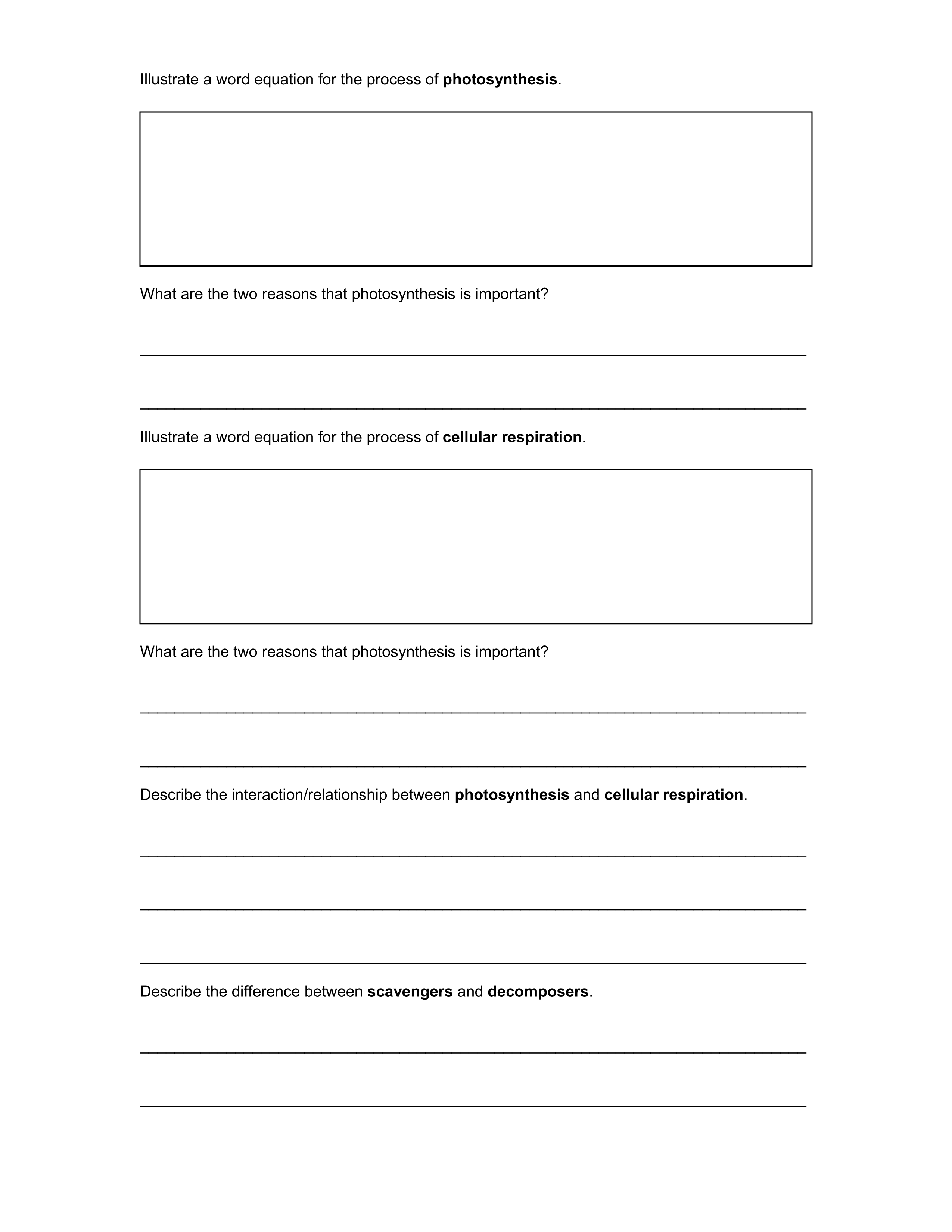 Illustrate a word equation for the process of photosynthesis. (pg. 30)