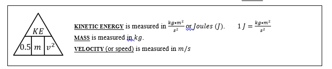 I have looked over the triangle that I will use to solve for Kinetic Energy and know how to use it.
