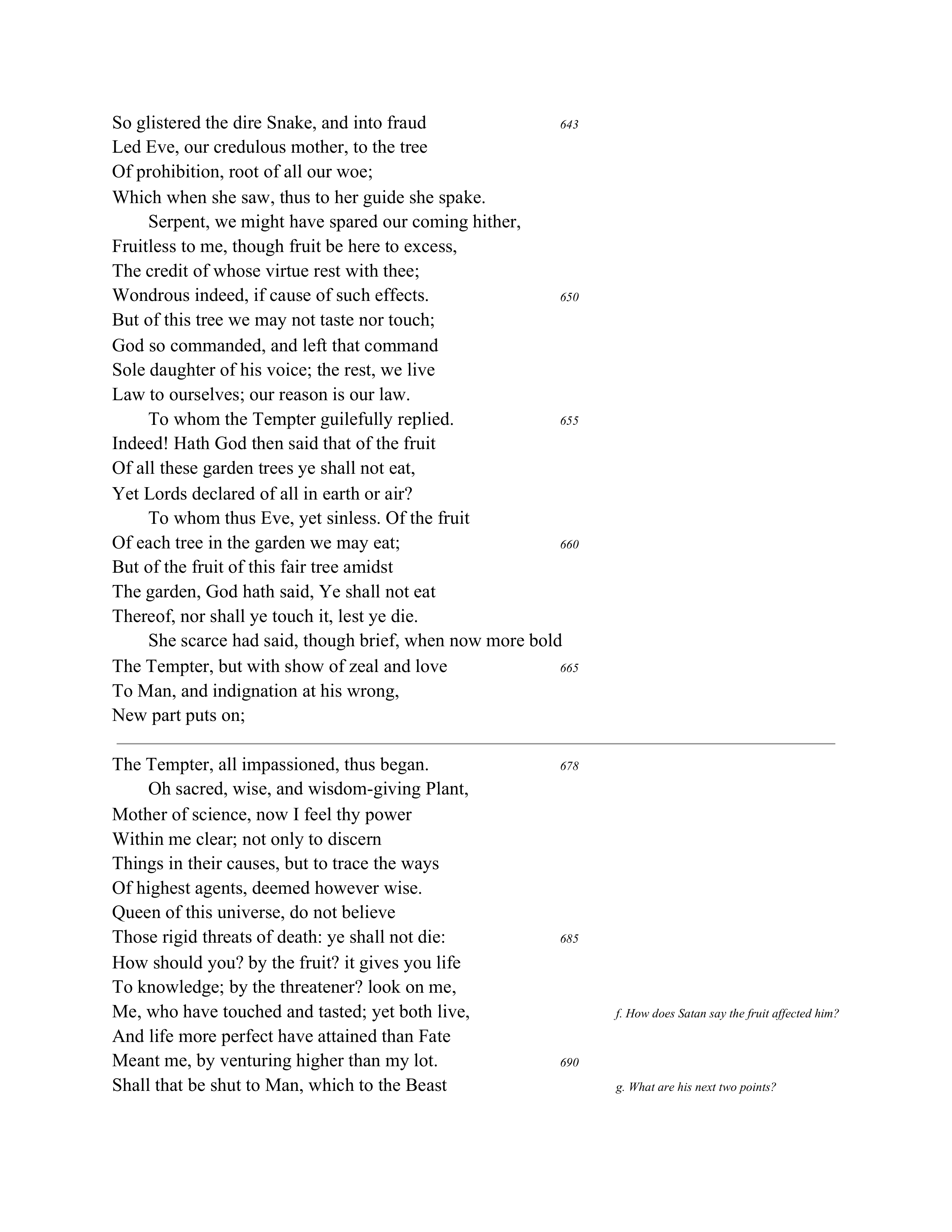 Steps to I/C/E a quote:1. Integrate: Satan explains, "2. Add the quote3. Cite: (Milton 687-689).4. Explain what the quote means