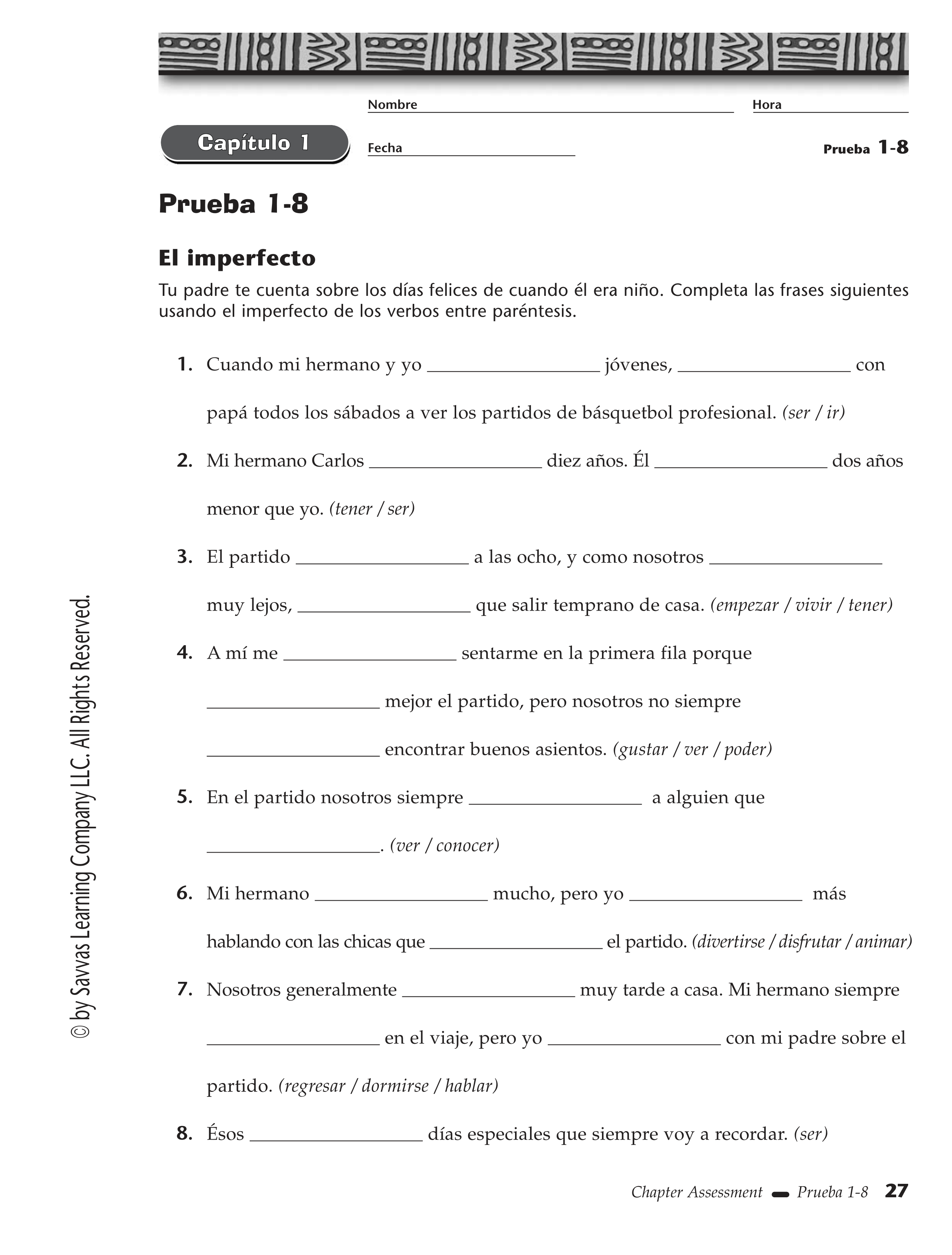 Spanish IV Imperfect Quiz