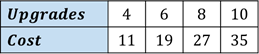 You’re playing your favorite game and want to crush the competition. You check out the prices for character upgrades. The cost to buy 10 upgrades is shown in the table. Write a function rule that can be used to determine the cost to purchase any number of upgrades.