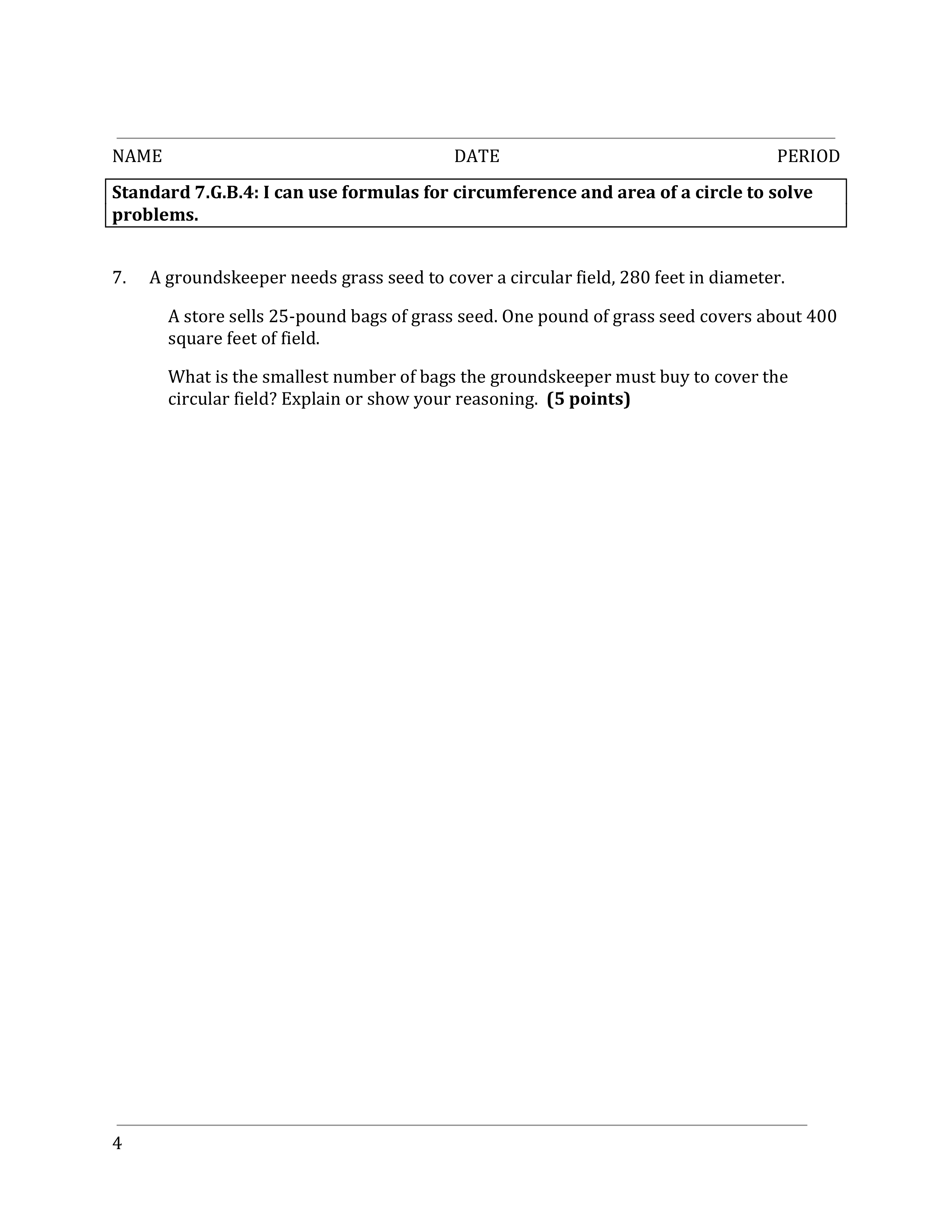 HINT: Step 1: Find the area of the circular field.Step 2: Find out how many bags of grass seed you will need.