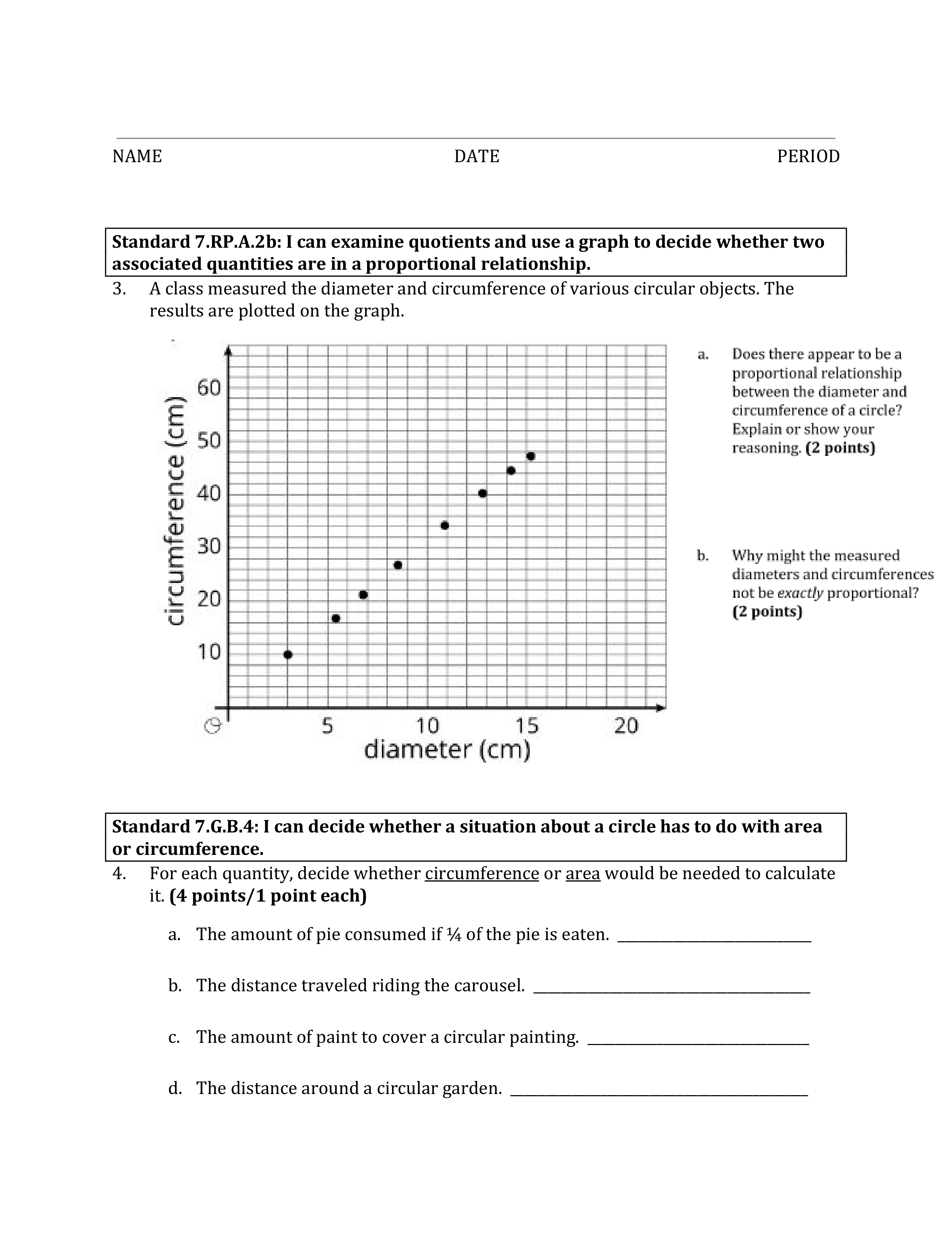 A class measured the diameter and circumference of various circular objects. The results are plotted on the graph.