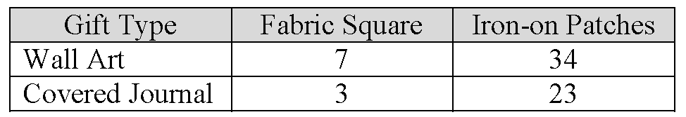 Ivo purchases the exact amount of supplies needed to make 2 wall arts and 4 covered journals.
