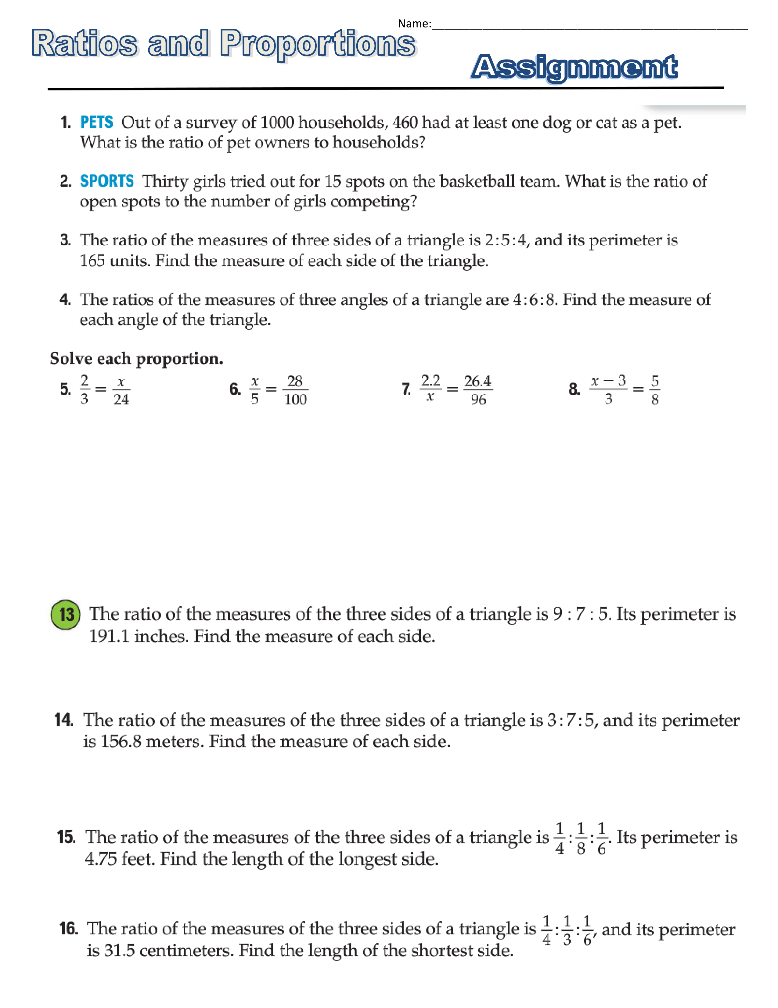 2x+5x+4x=165)(make sure to plug the value of x back into each to find the final answer)
