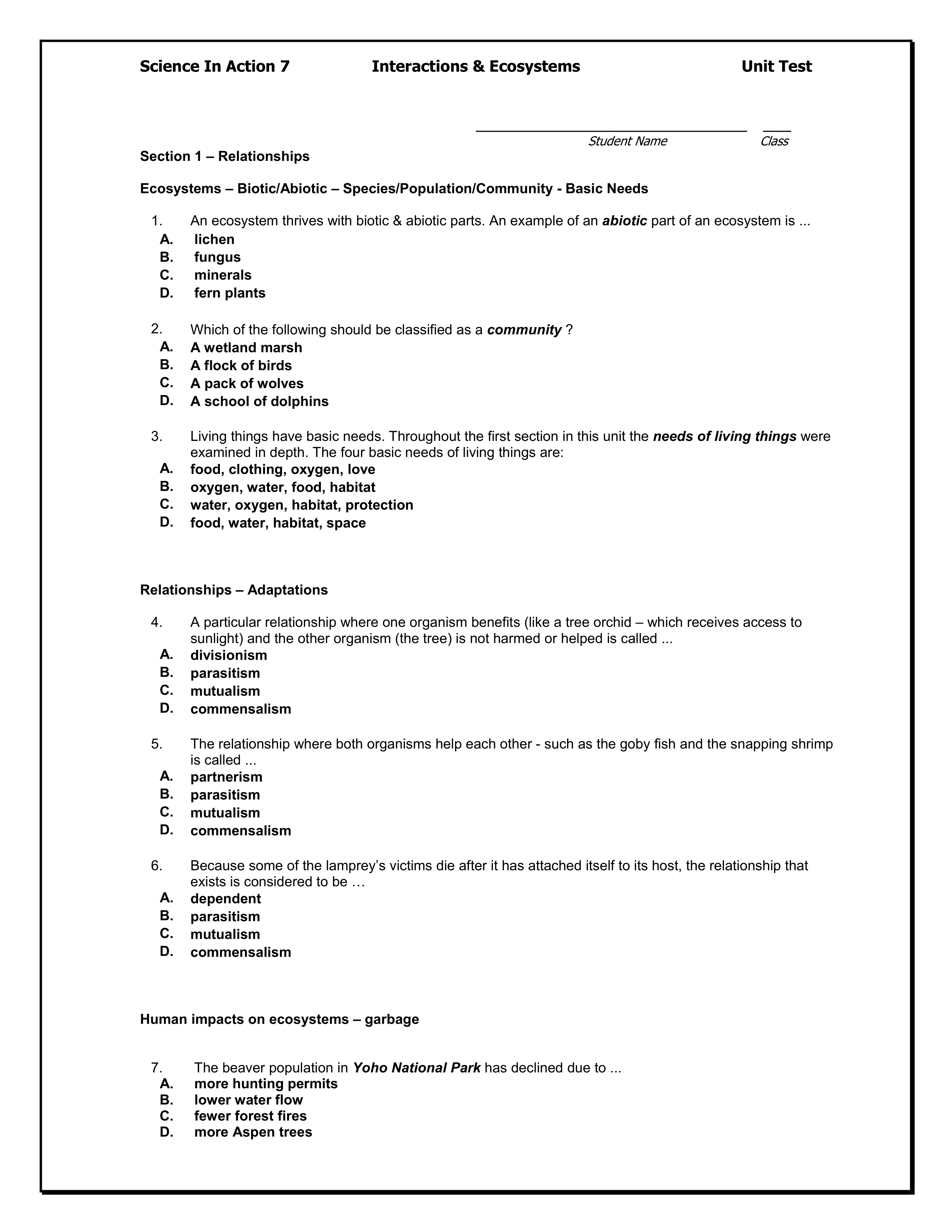 A particular relationship where one organism benefits (like a tree orchid – which receives access to sunlight) and the other organism (the tree) is not harmed or helped is called ...