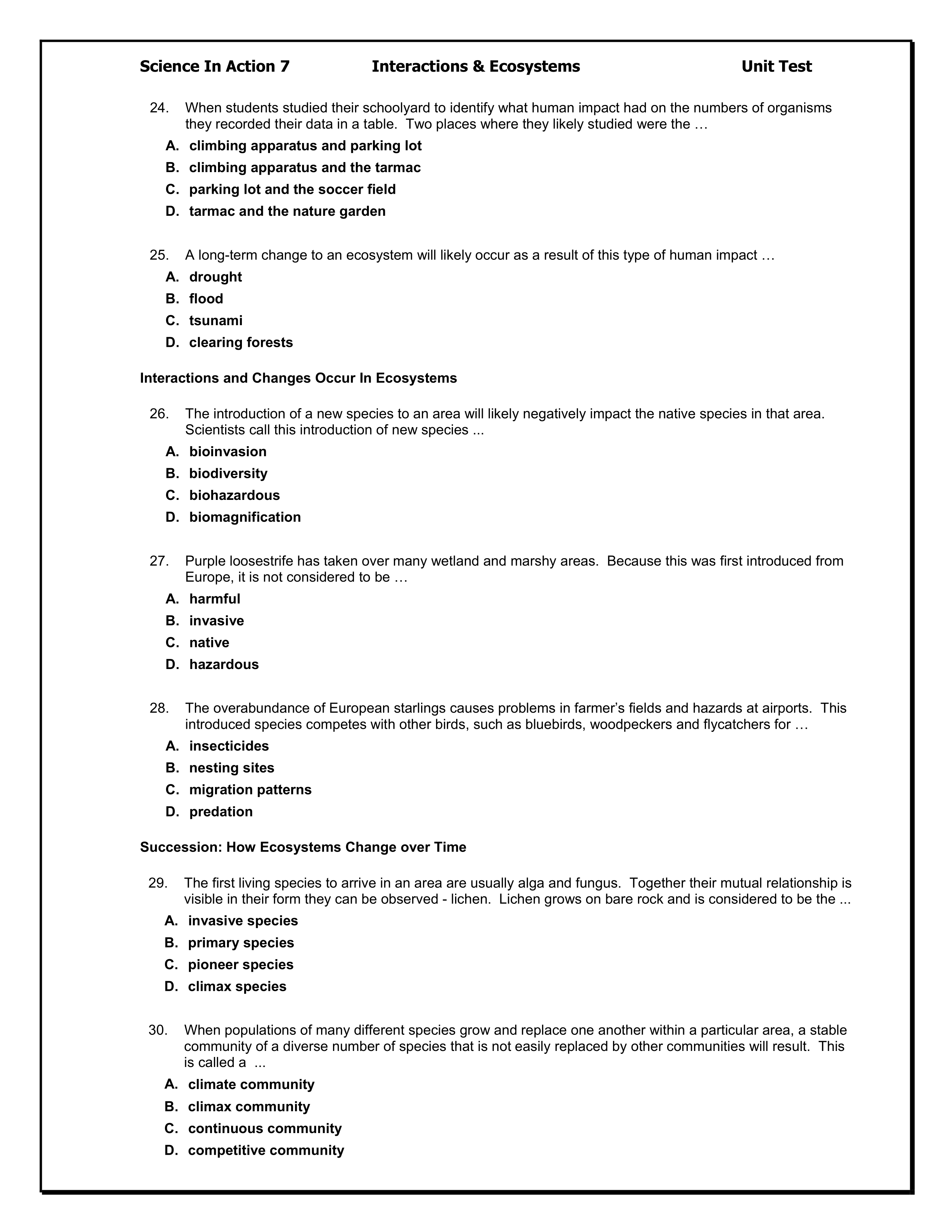 When populations of many different species grow and replace one another within a particular area, a stablecommunity of a diverse number of species that is not easily replaced by other communities will result. Thisis called a ...