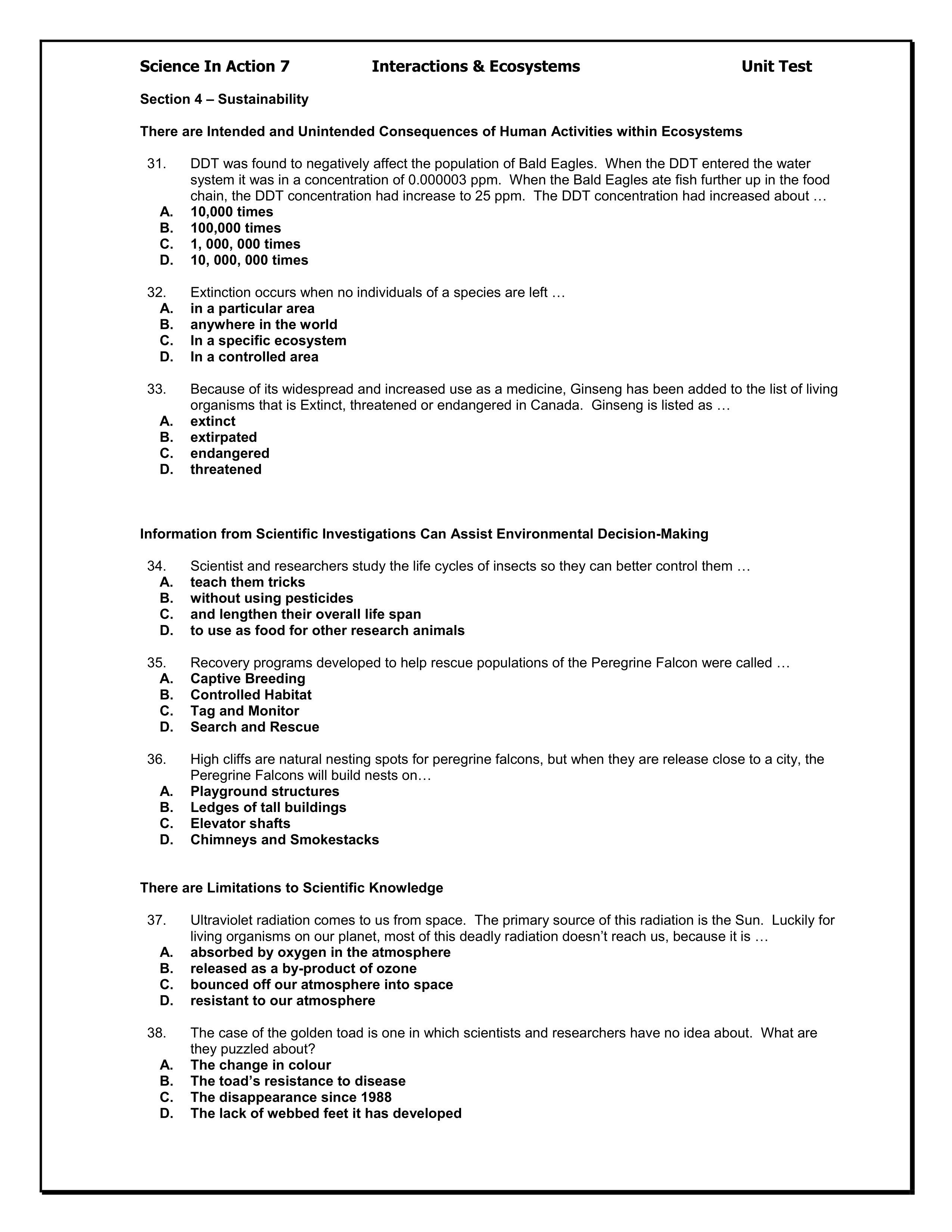 DDT was found to negatively affect the population of Bald Eagles. When the DDT entered the water system it was in a concentration of 0.000003 ppm. When the Bald Eagles ate fish further up in the food chain, the DDT concentration had increase to 25 ppm. The DDT concentration had increased about ...
