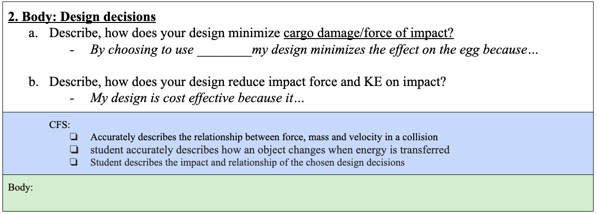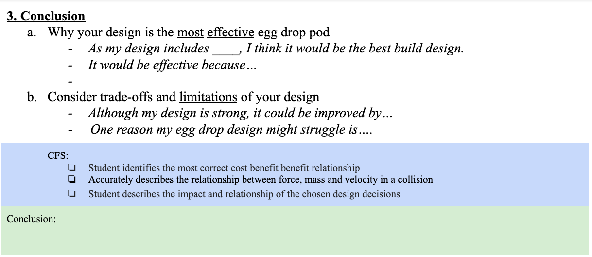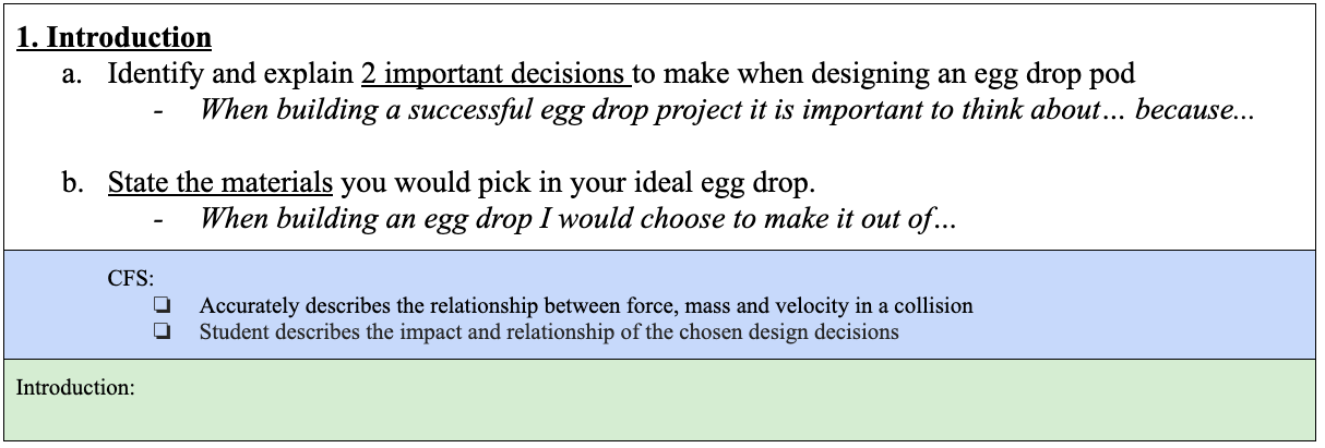 This is the introduction of an Egg drop proposal from last year. To the best of your ability, draw the design they chose to create below: