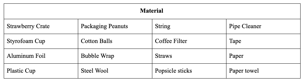 Draw a sketch or a design of how you imagine your egg drop project looking like.