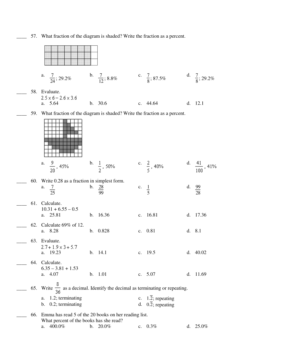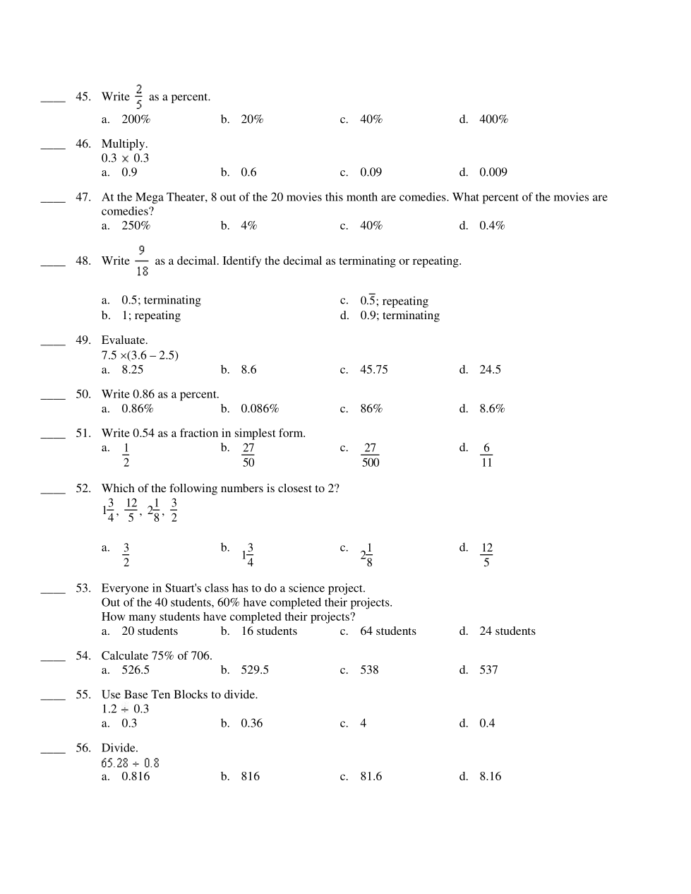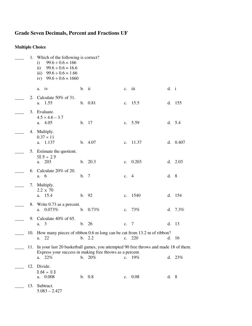 Math 7: Percents, Decimals and Fractions UF