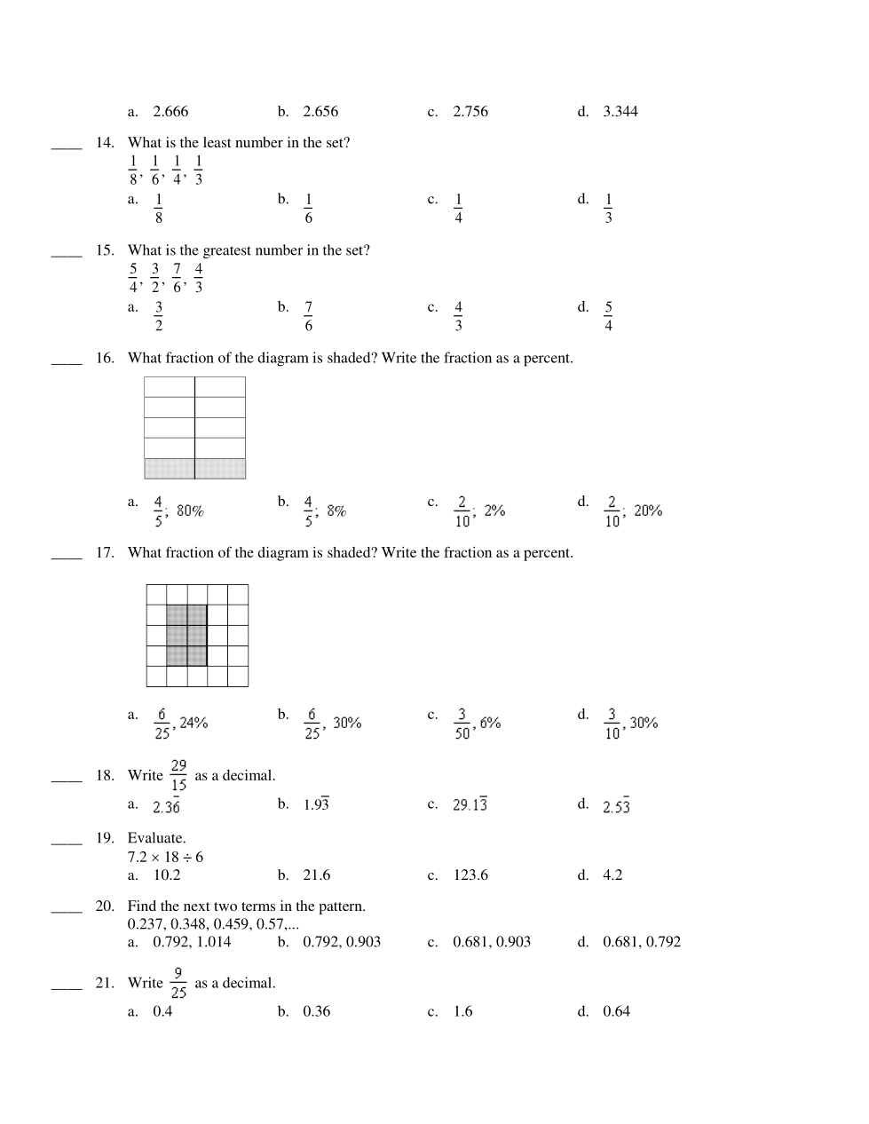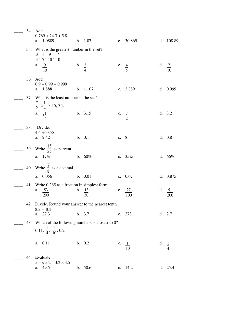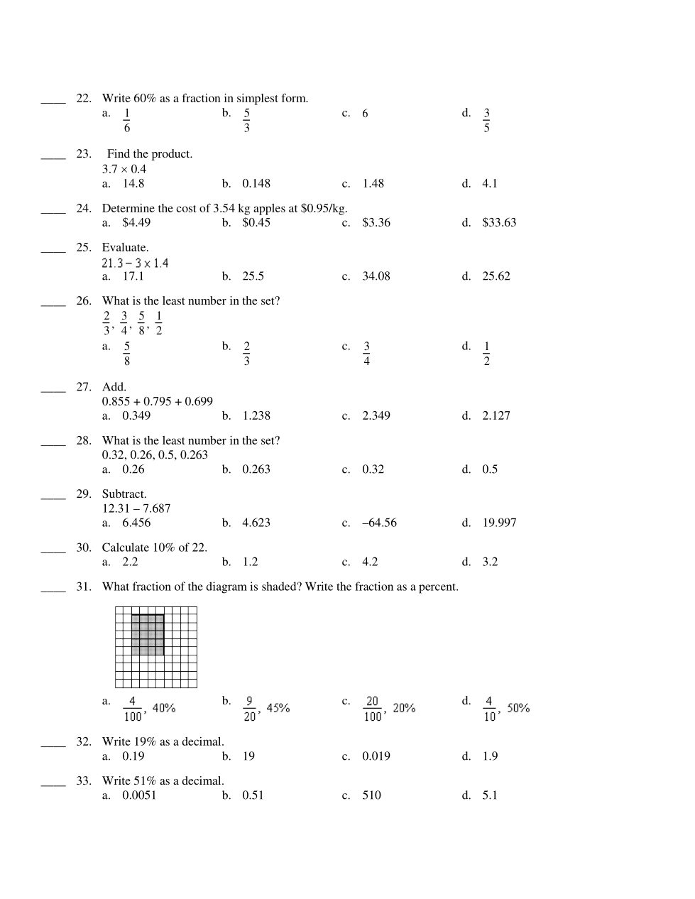 Math 7: Percents, Decimals and Fractions UF