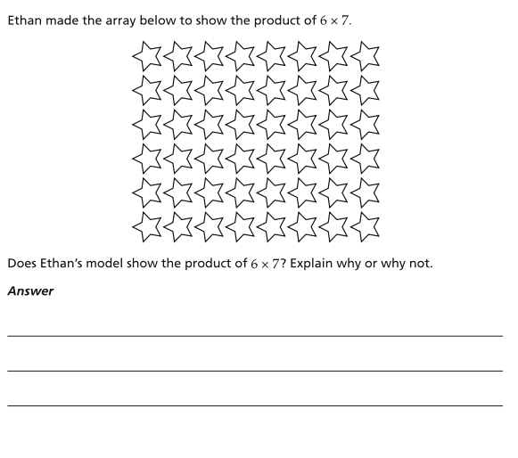 Ethan made the array below to show the product of 6 x 7.