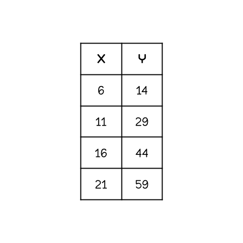 Write the slope-intercept form of the equation from the following table.